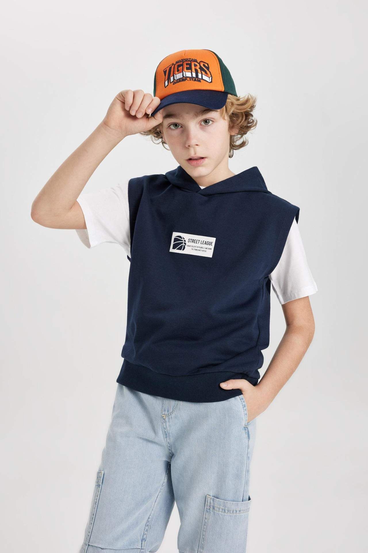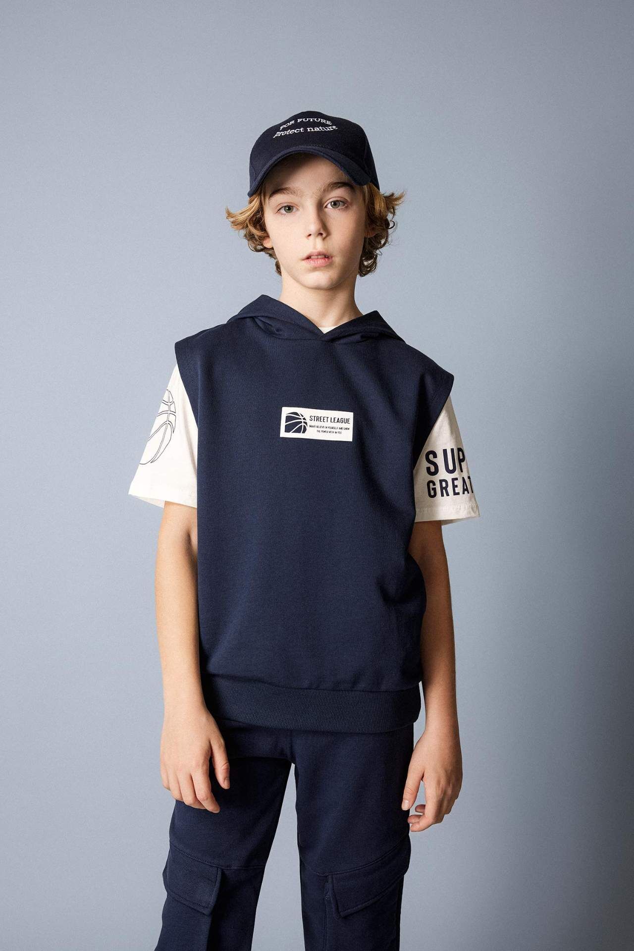 DeFacto Erkek Çocuk Regular Fit Kapüşonlu Baskılı Kısa Kollu Tişört