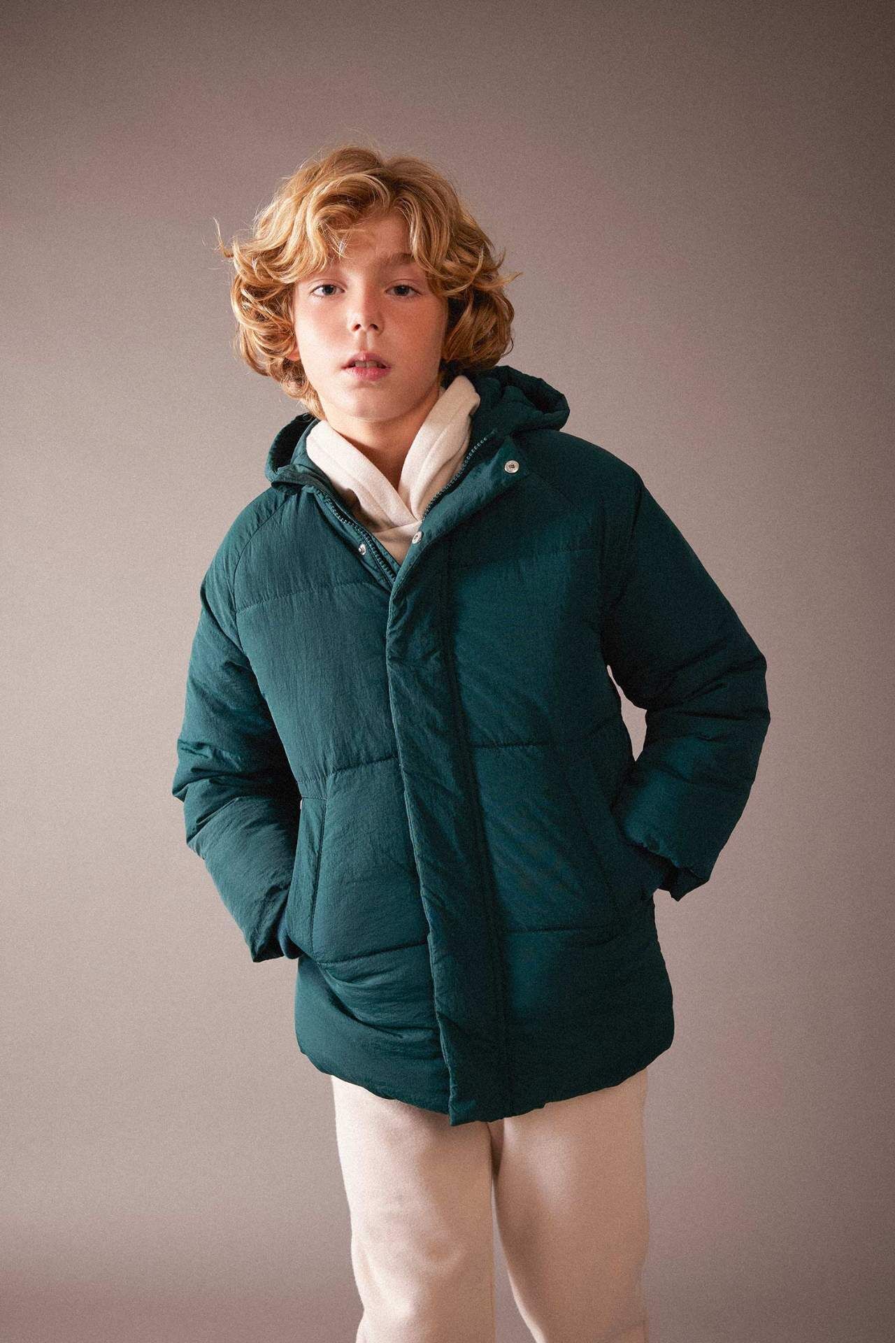 DeFactoFit Erkek Çocuk Su İtici Kapüşonlu Pelüş Astar Mont