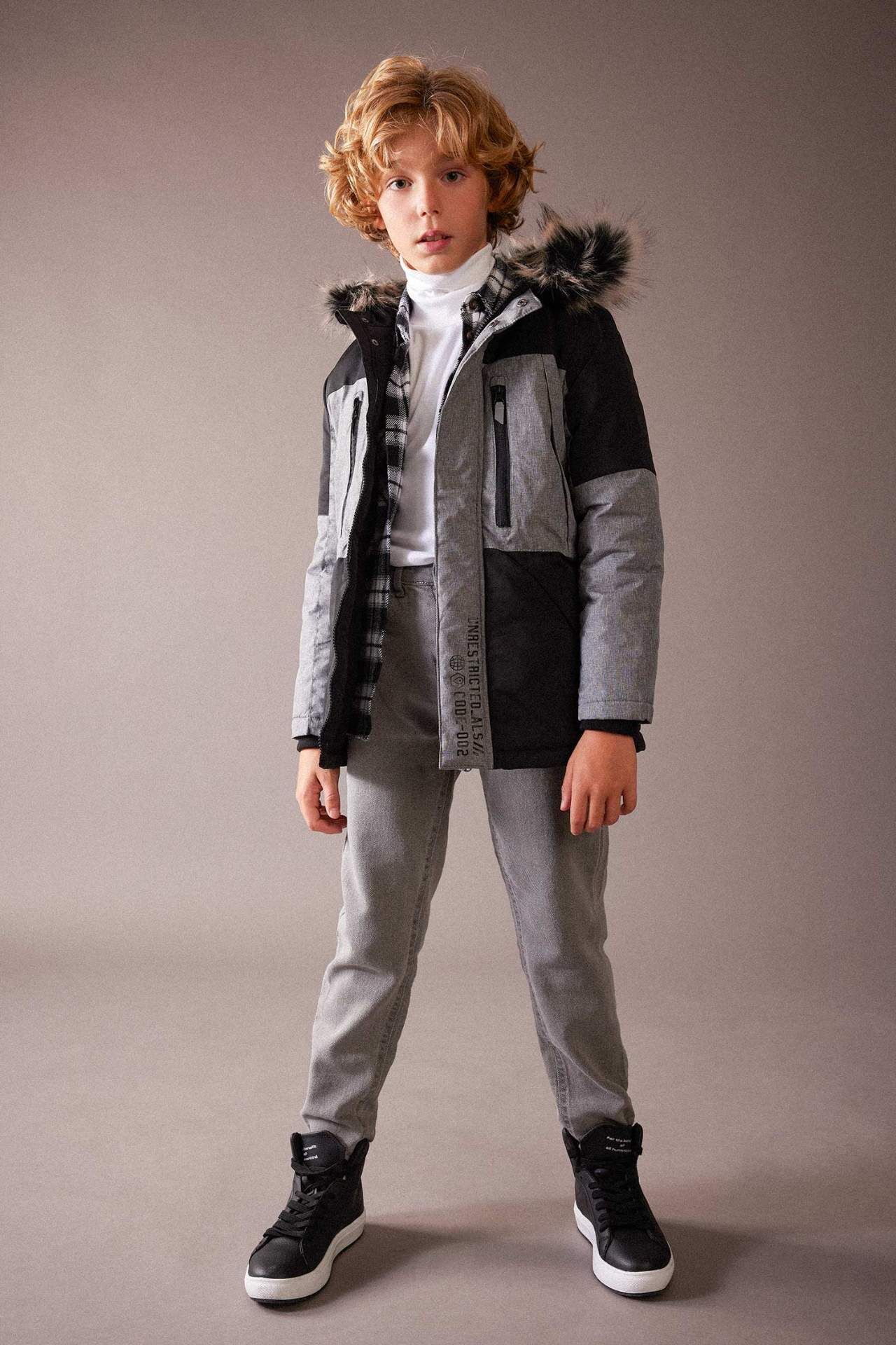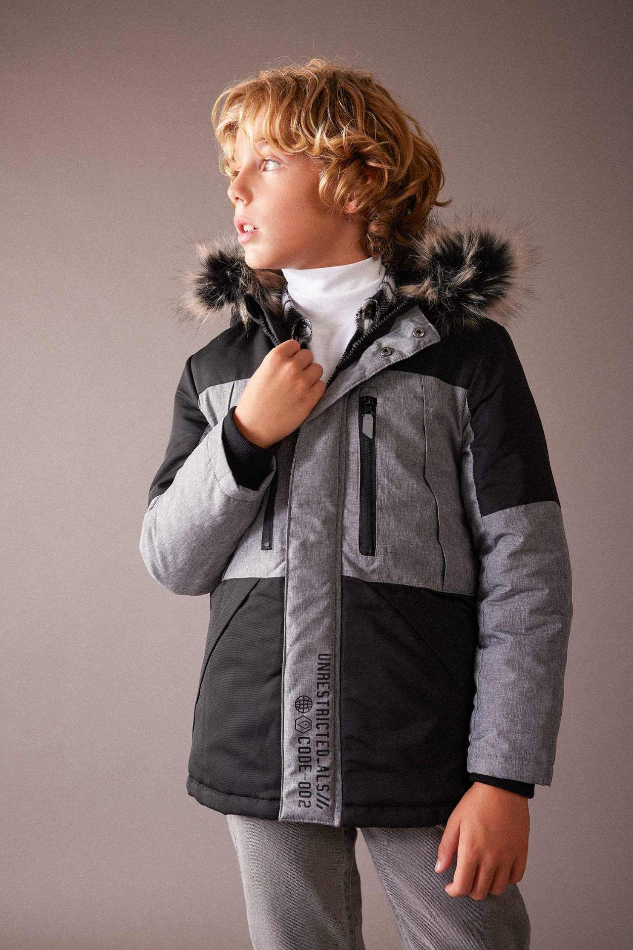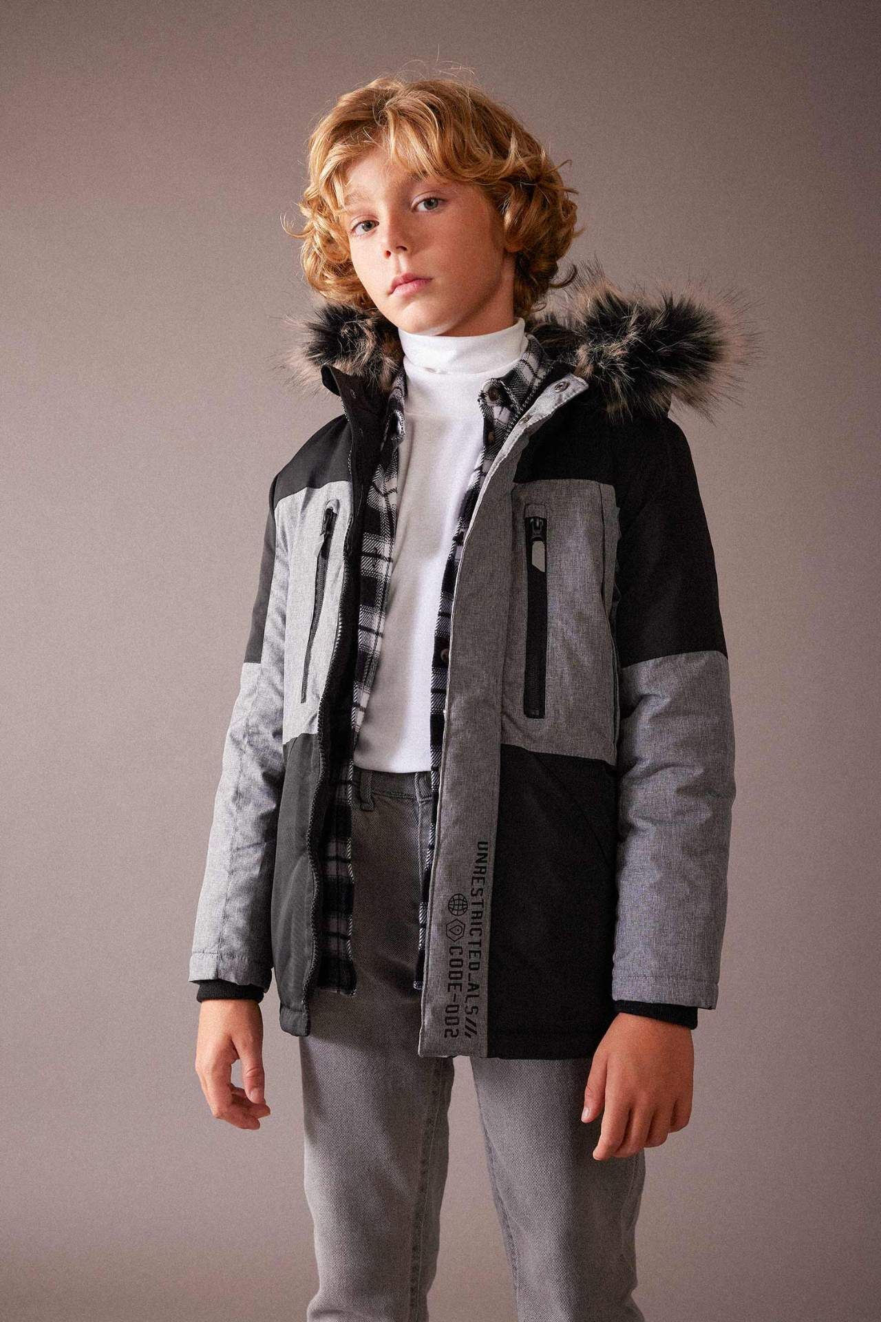 DeFacto Erkek Çocuk Su İtici Kapüşonlu Polar Astarlı Şişme Parka