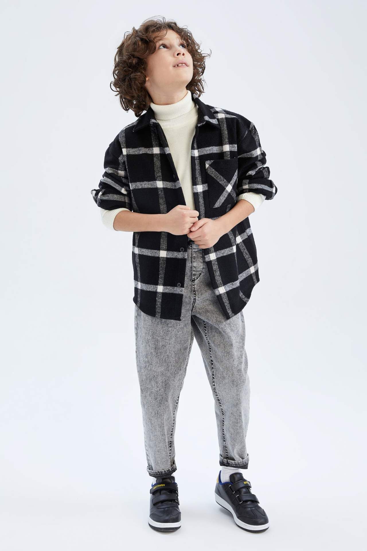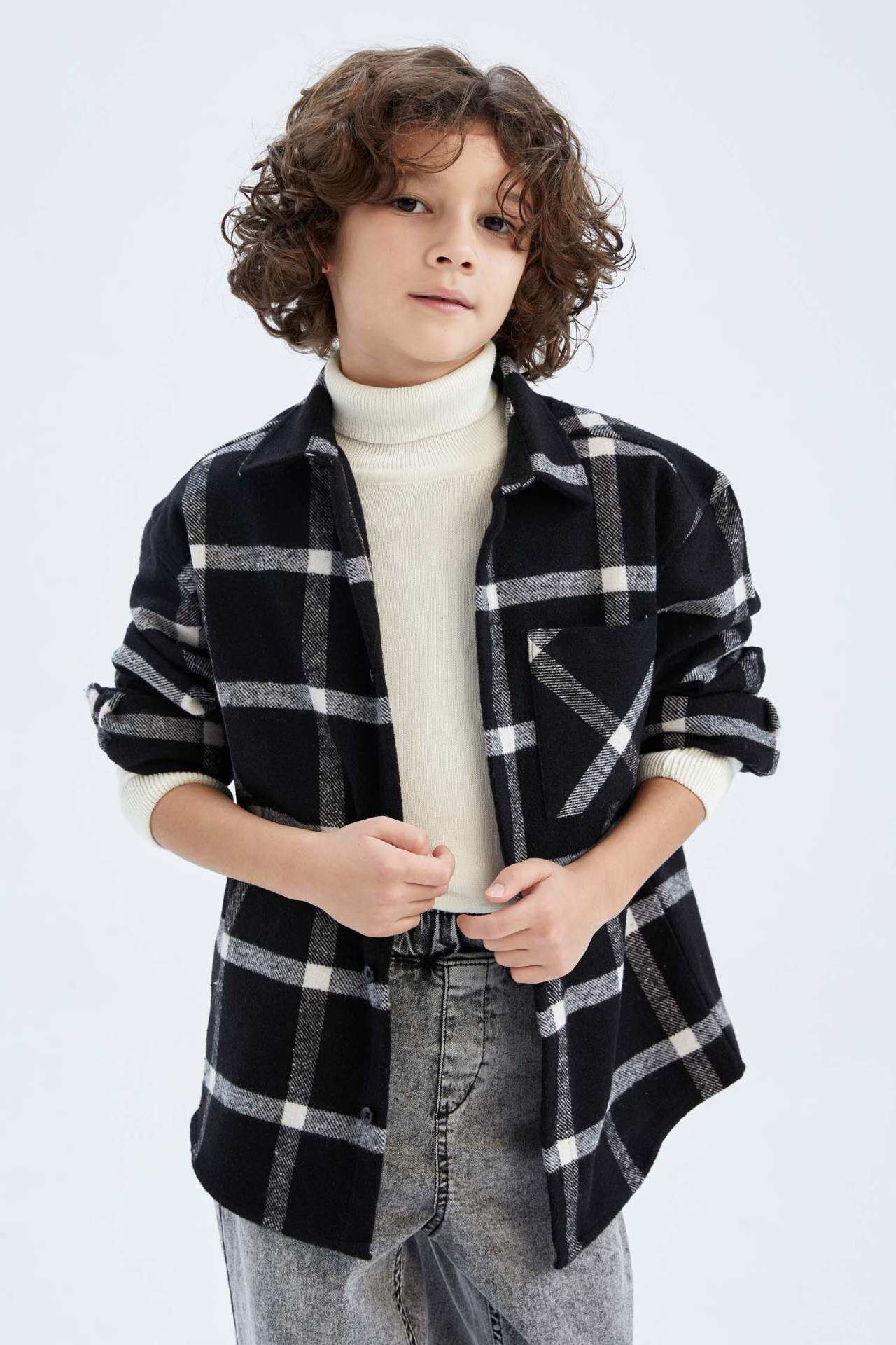 DeFactoFit Erkek Çocuk Uzun Kollu Flanel Gömlek Siyah