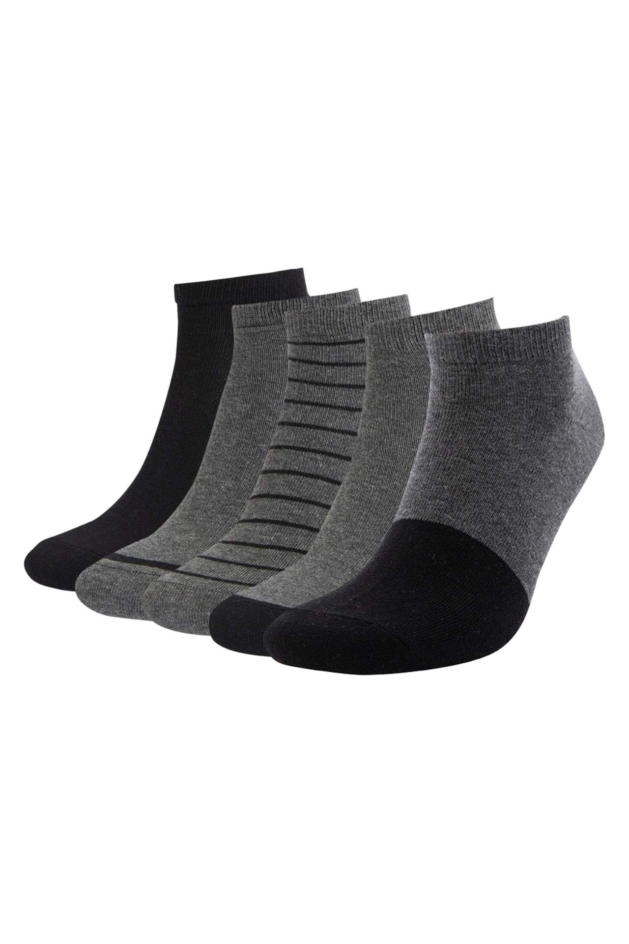 DeFactoFit Erkek Desenli 5'li Patik Çorap Gri