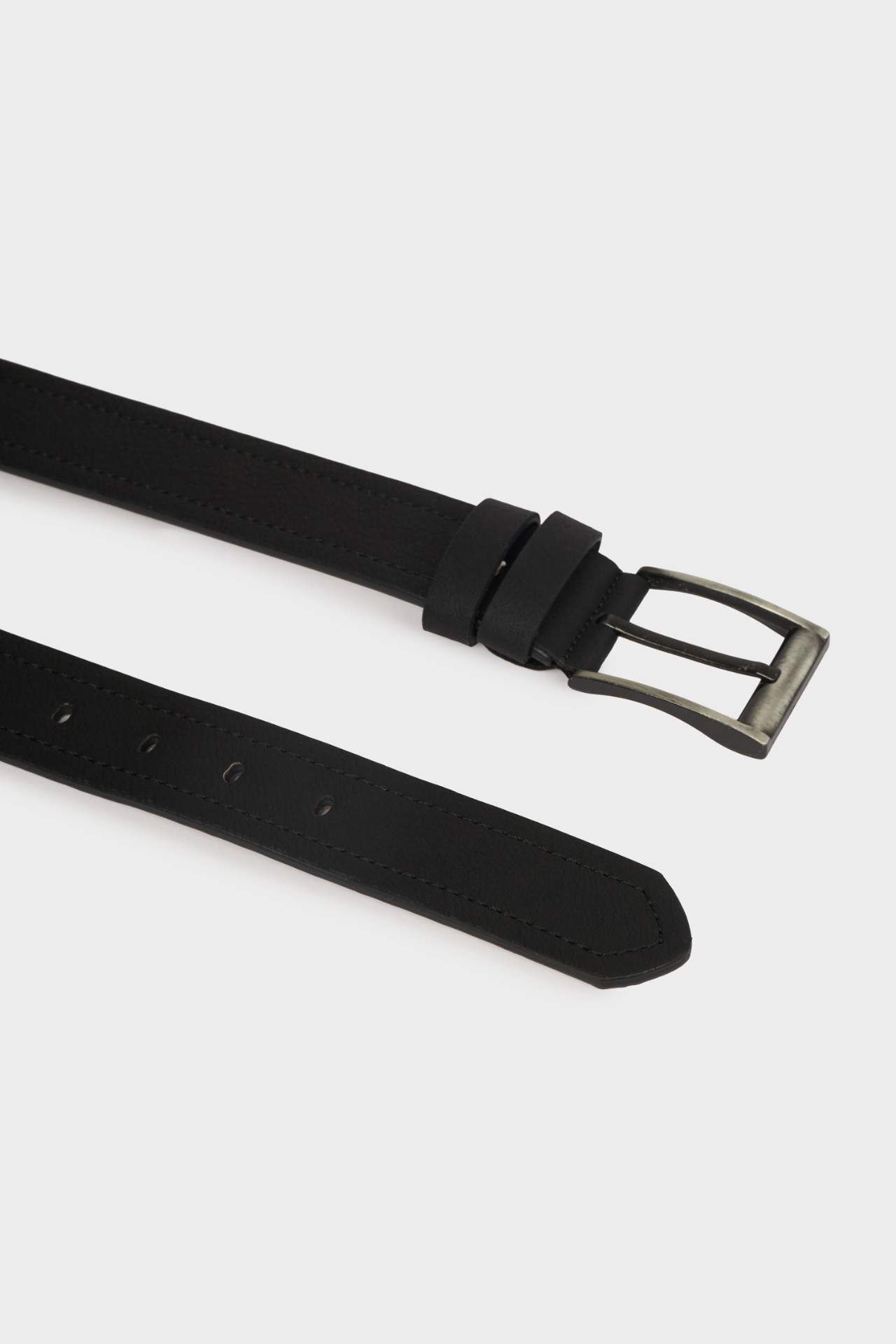 Erkek Dikdörtgen Toka Suni Deri Jean Kemeri Siyah