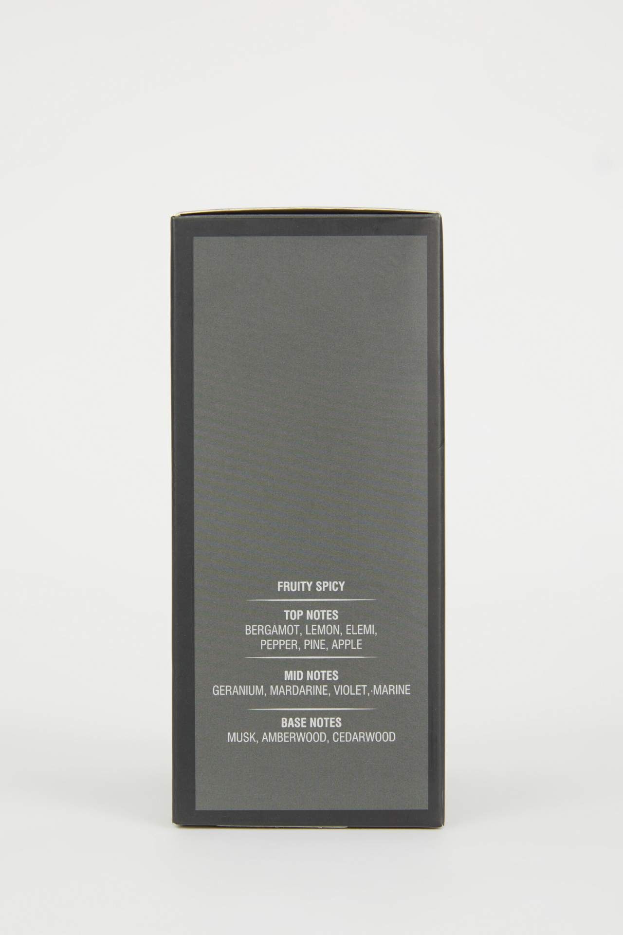 Bakımlı erkeğin vazgeçilmezi DeFacto parfümlerden sana uygun olanı seç, fark edilmeye hazır ol! Üst nota, parfümü ilk sıktığınızda gelen kokudur sonrasında orta nota kokusu gelir ve en son üstünüzde kalacak koku ise alt notadır. Koku ailesi; Meyveli Baharatlı Üst nota: Bergamot, Limon, Elemi, Biber, Çam, Elma Orta nota: Sardunya, Mandarin, Menekşe, Deniz Alt nota: Misk, Amber Ağacı, Sedir Ağacı Kozmetik 100%