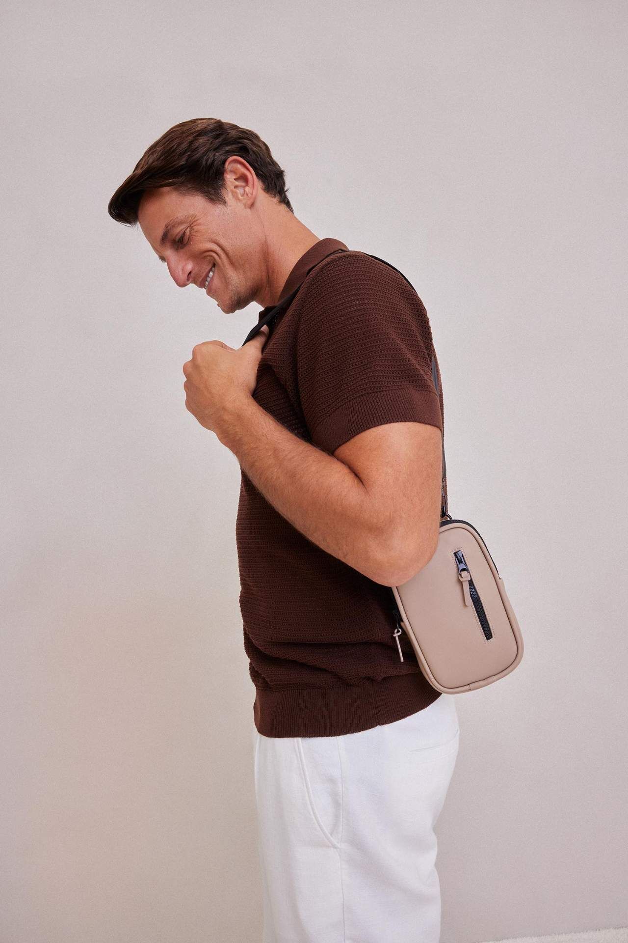 DeFactoFit Erkek Orta Suni Deri Telefon Çantası