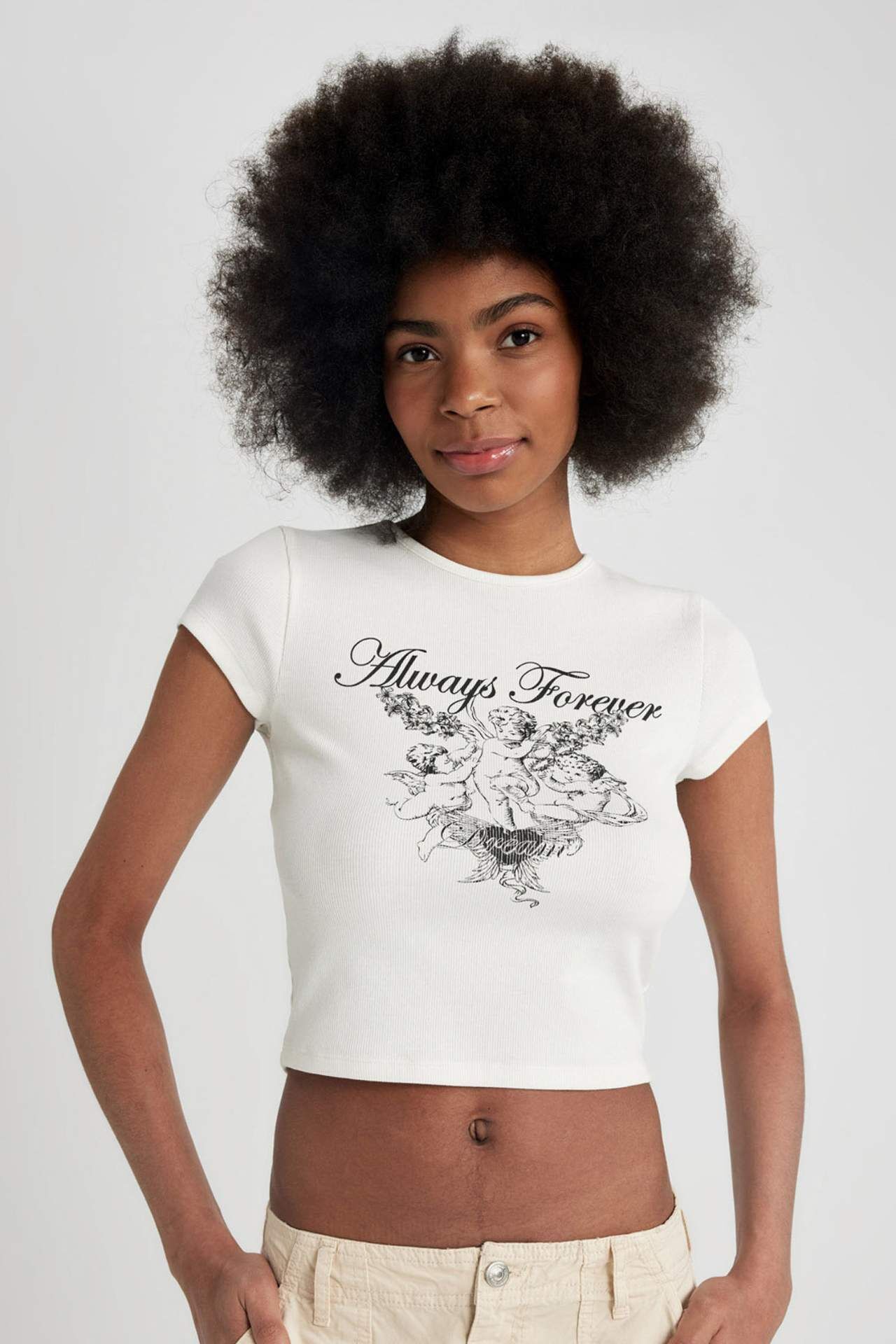DeFactoFit Fitted Bisiklet Yaka Baskılı Kısa Kollu Tişört