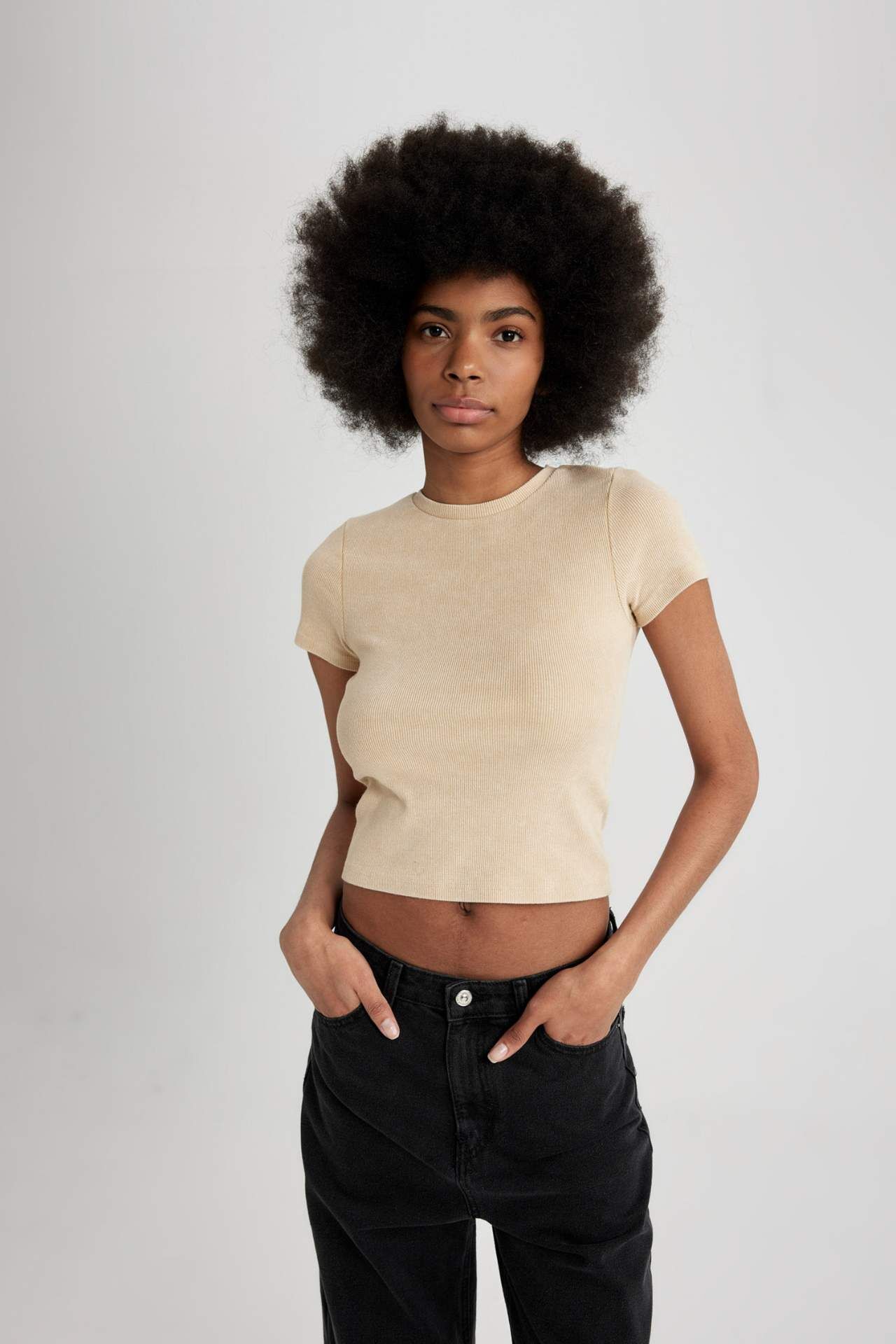 DeFactoFit Fitted Bisiklet Yaka Kısa Kollu Tişört B9229AX24SMBG788