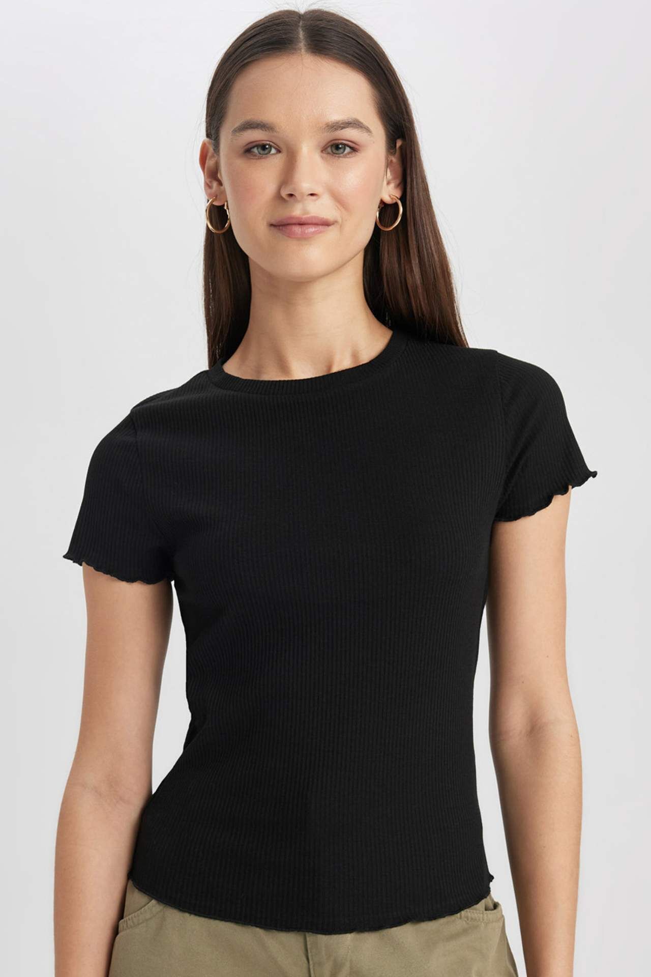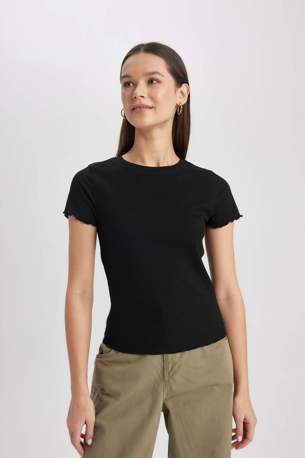DeFactoFit Fitted Bisiklet Yaka Kısa Kollu Tişört K7064AZ24SMBK81