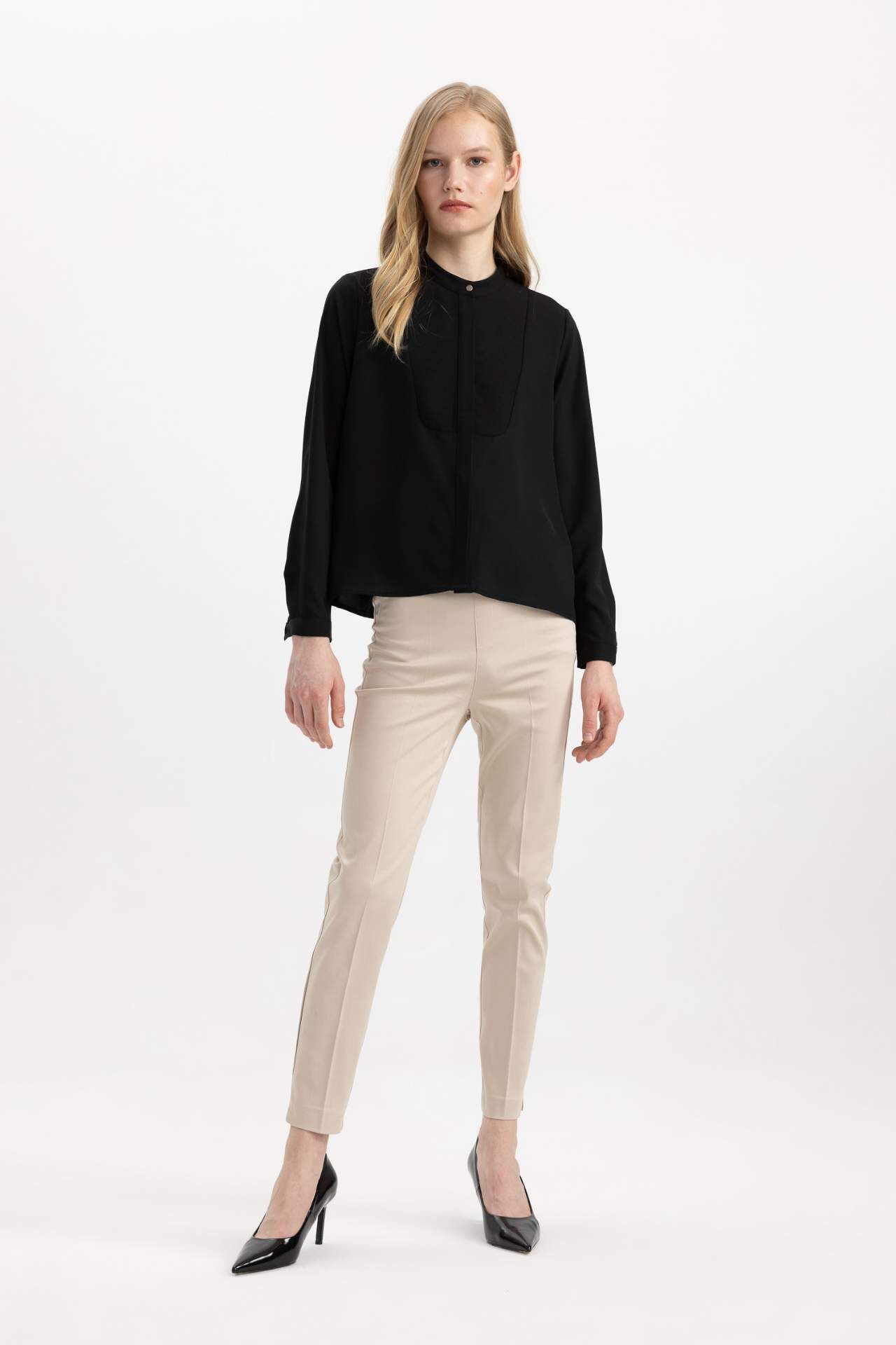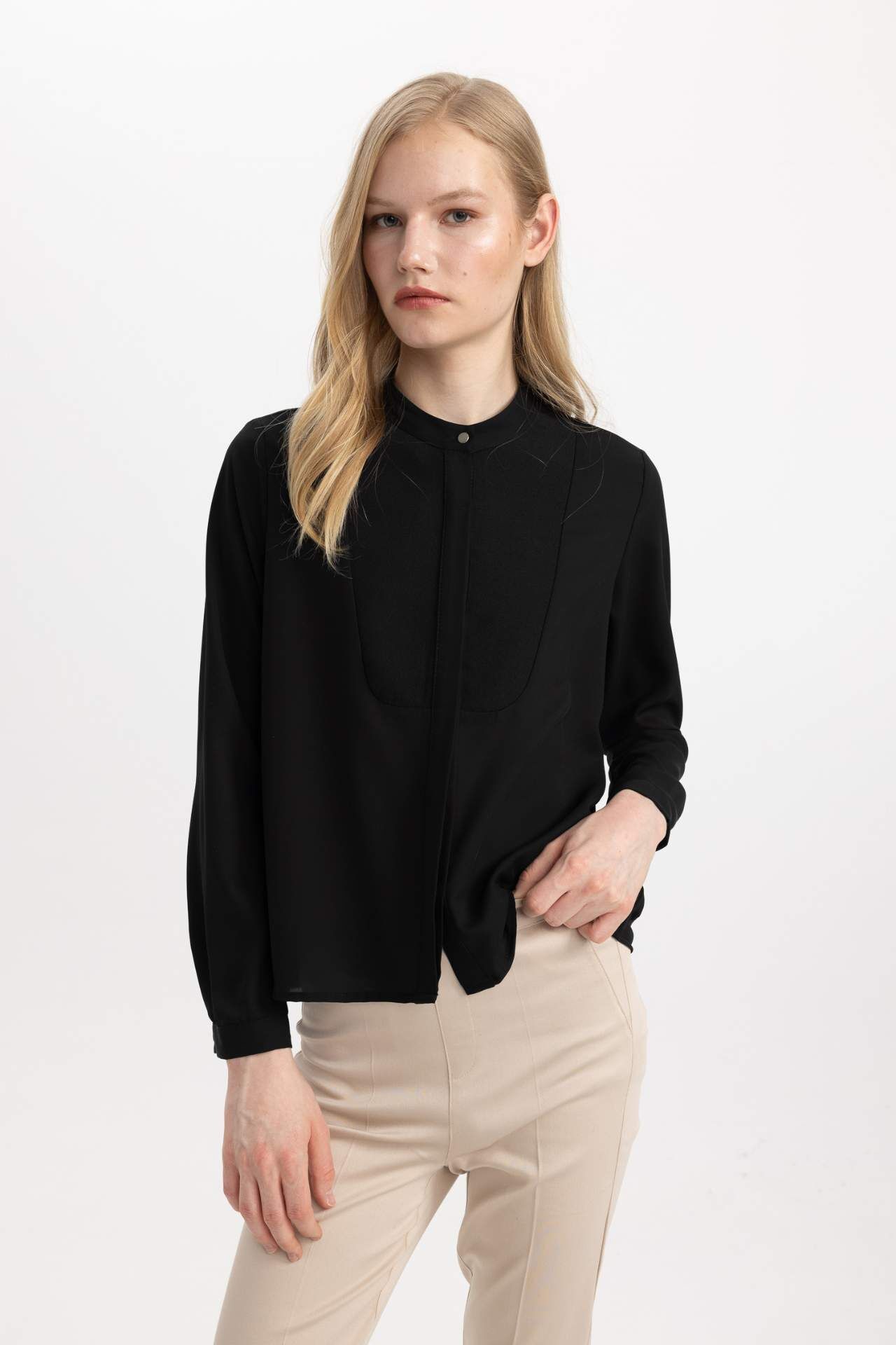 DeFactoFit Fitted Bisiklet Yaka Krep Uzun Kollu Bluz