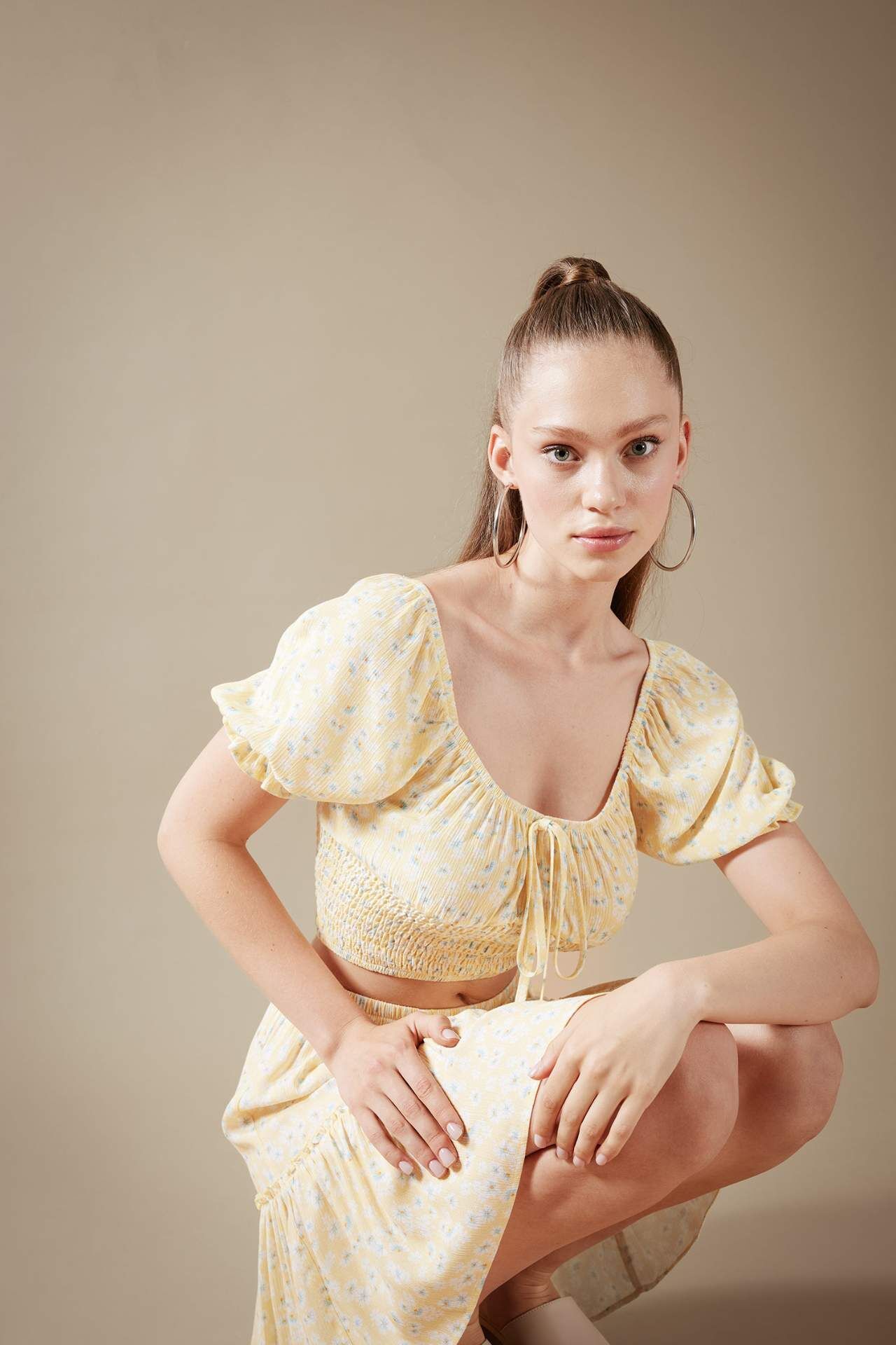 Ofiste trend şıklık elde etmek isteyen kadınlar için, kısa kollu, esnek belli, desenli viskon kumaşıyla her tarz jean pantolon, dokuma pantolon, tayt, jean şort ve eteklerinizle rahatlıkla kombinleyeceğiniz, crop kesimiyle DeFacto Kadın Fitted Kare Yaka Baskılı Kısa Kollu Crop Bluz. Viskoz 100%,Viskoz 100%,Viskoz 100% Manken Bedeni: Göğüs: 78 Boy: 1,73 Basen: 87 Bel: 57