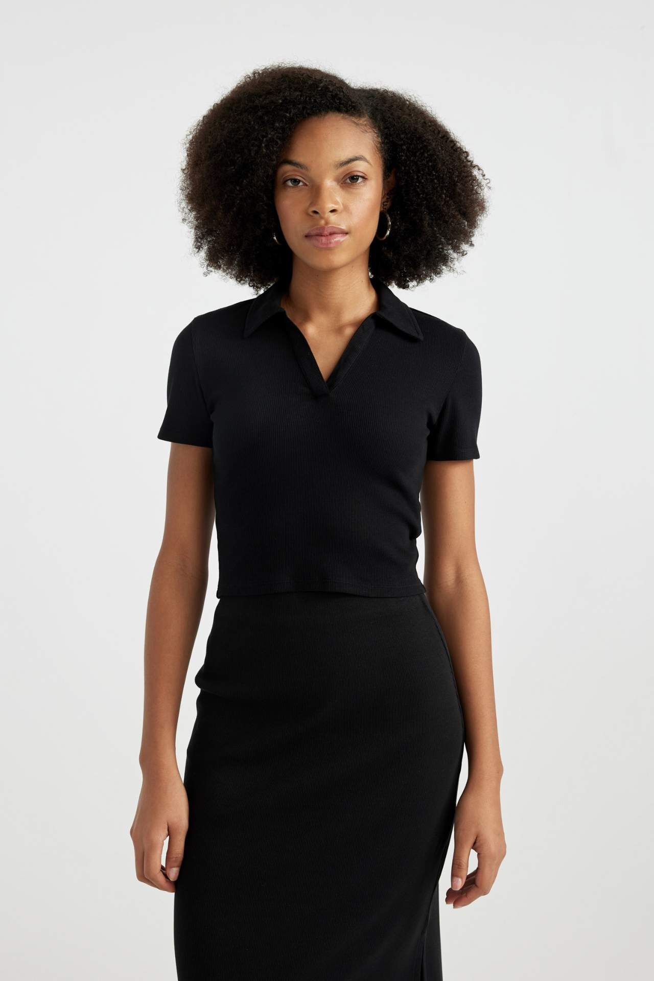 DeFactoFit Fitted Polo Yaka Kısa Kollu Tişört A0379AX24SMBK81