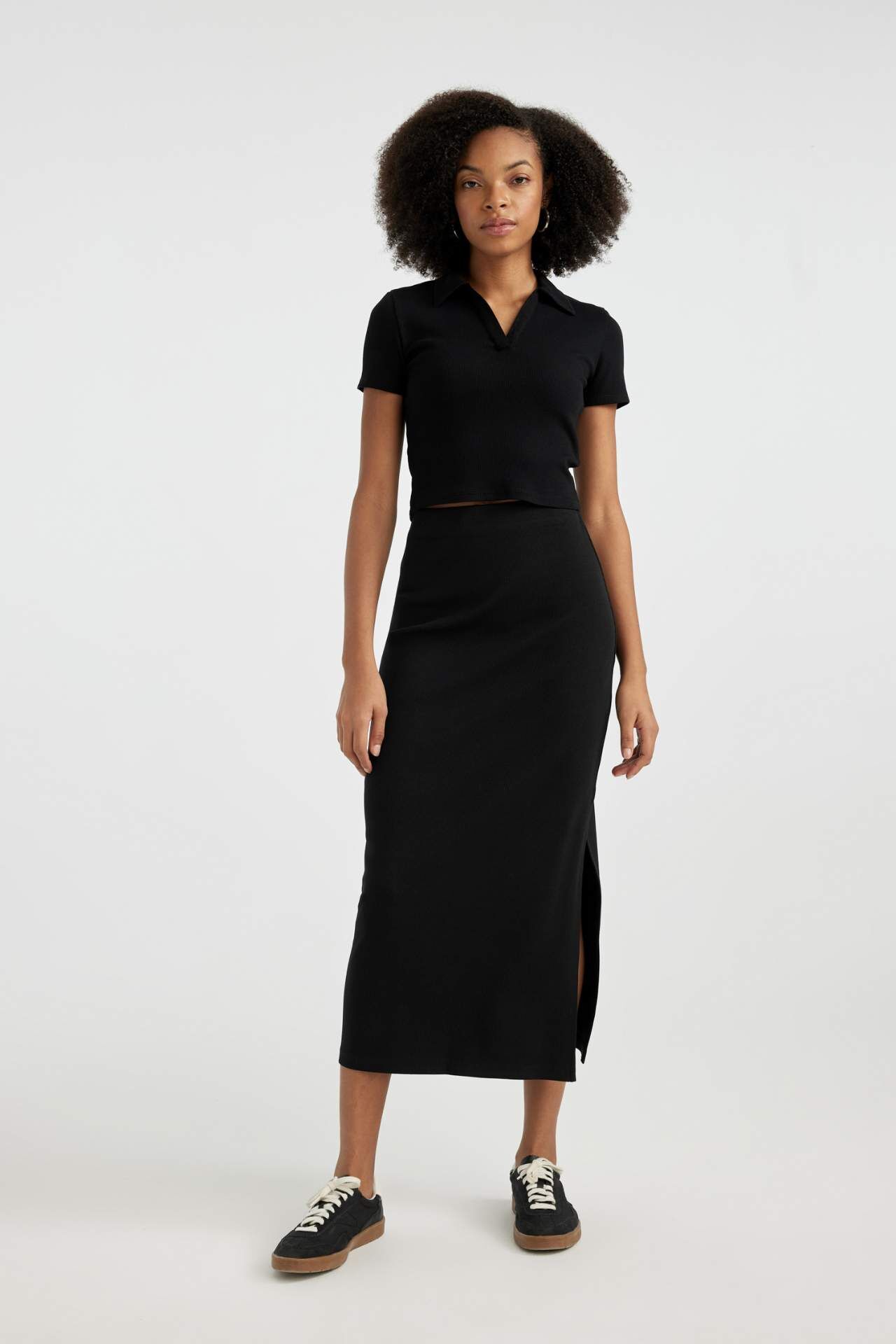 Şık ve rahat Fitted Polo Yaka Kısa Kollu Tişört, gardırobunuzun vazgeçilmezi olmaya aday. Kaliteli kumaşı ve şık tasarımıyla her duruma uyum sağlar. Şimdi stiline şıklık kat! Pamuk 97%,Elastan 3%,Pamuk 97%,Elastan 3% Manken Bedeni: Göğüs: 80 Boy: 1,77 Basen: 90 Bel: 64