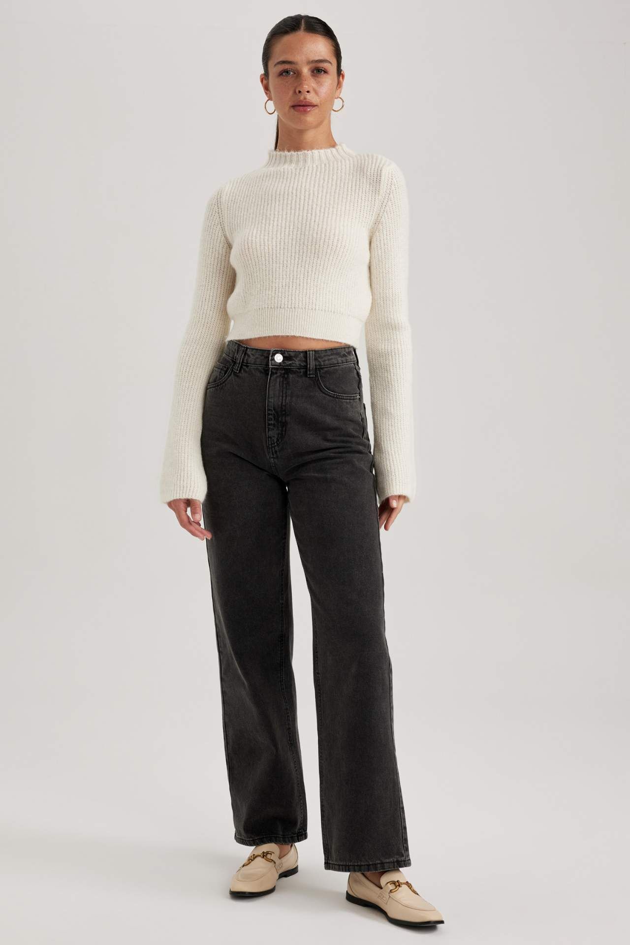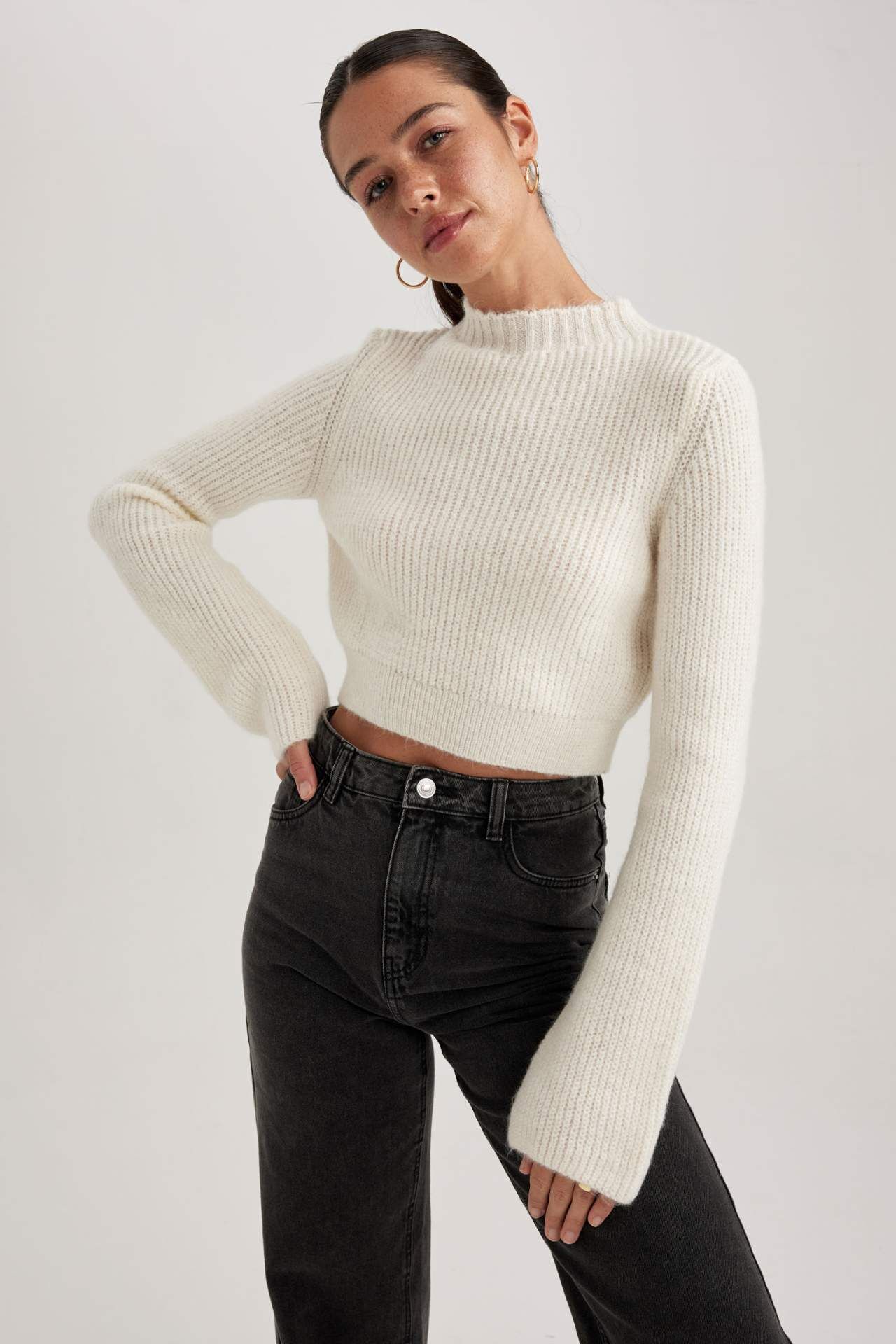 Yarım balıkçı yaka, crop modeli ve fitted rahat kesimi ile hem fit görünebileceğiniz hem de yüksek bel jean pantolon, mom fit jean, carrot fit pantolon, paper bag pantolon, midi etek, kalem etek, triko jogger pantolon, suni deri pantolon ve dokuma taytlarınızla kombinleyebileceğiniz, kış ve bahar aylarının en çok tercih edilen kullanışlı kombin parçası, yumuşak dokusuyla DeFacto Kadın Fitted Yarım Balıkçı Yaka Selanik Kumaş Kazak. Akrilik 76%,Poliester 24% Manken Bedeni: Göğüs: 81 Boy: 1,75 Basen: 88 Bel: 60