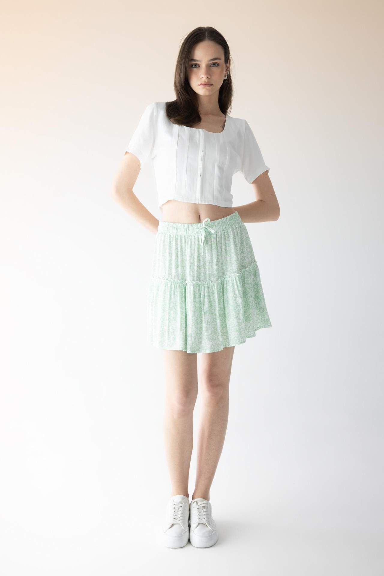 DeFactoFit Floral Krinkıl Viskon Mini Şort Etek