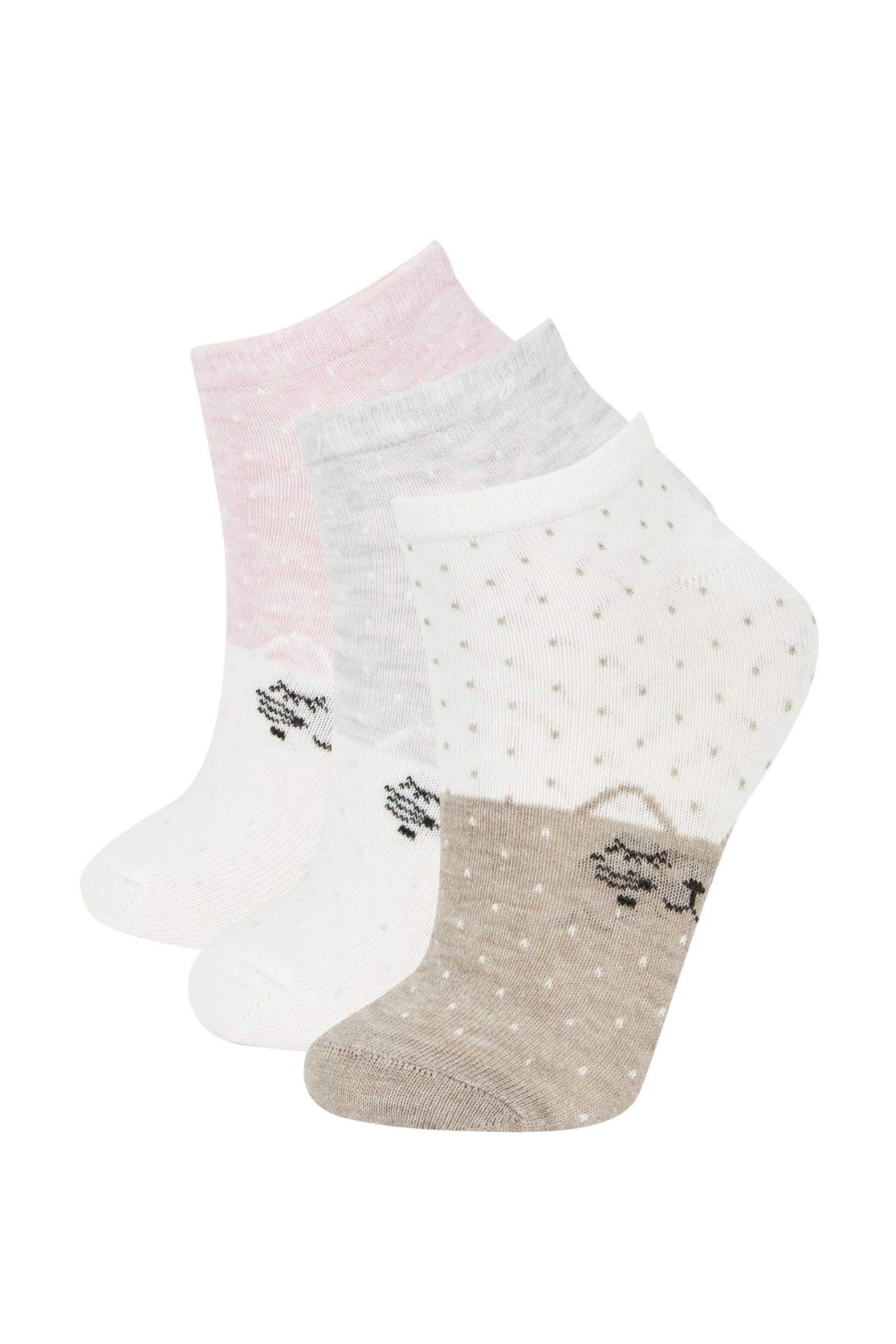 DeFactoFit Kadın 3'lü Pamuklu Patik Çorap R8374AZNSKR1