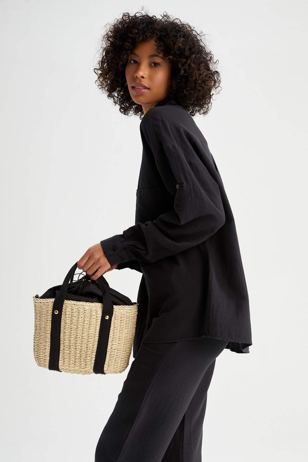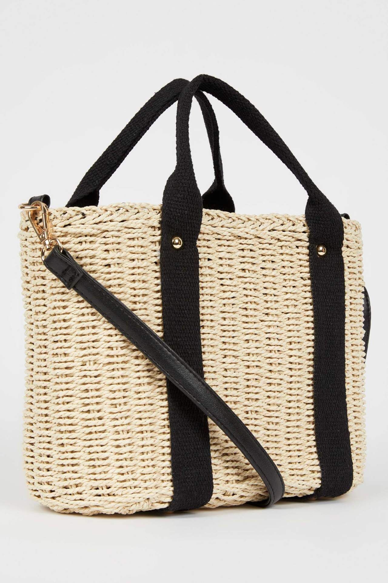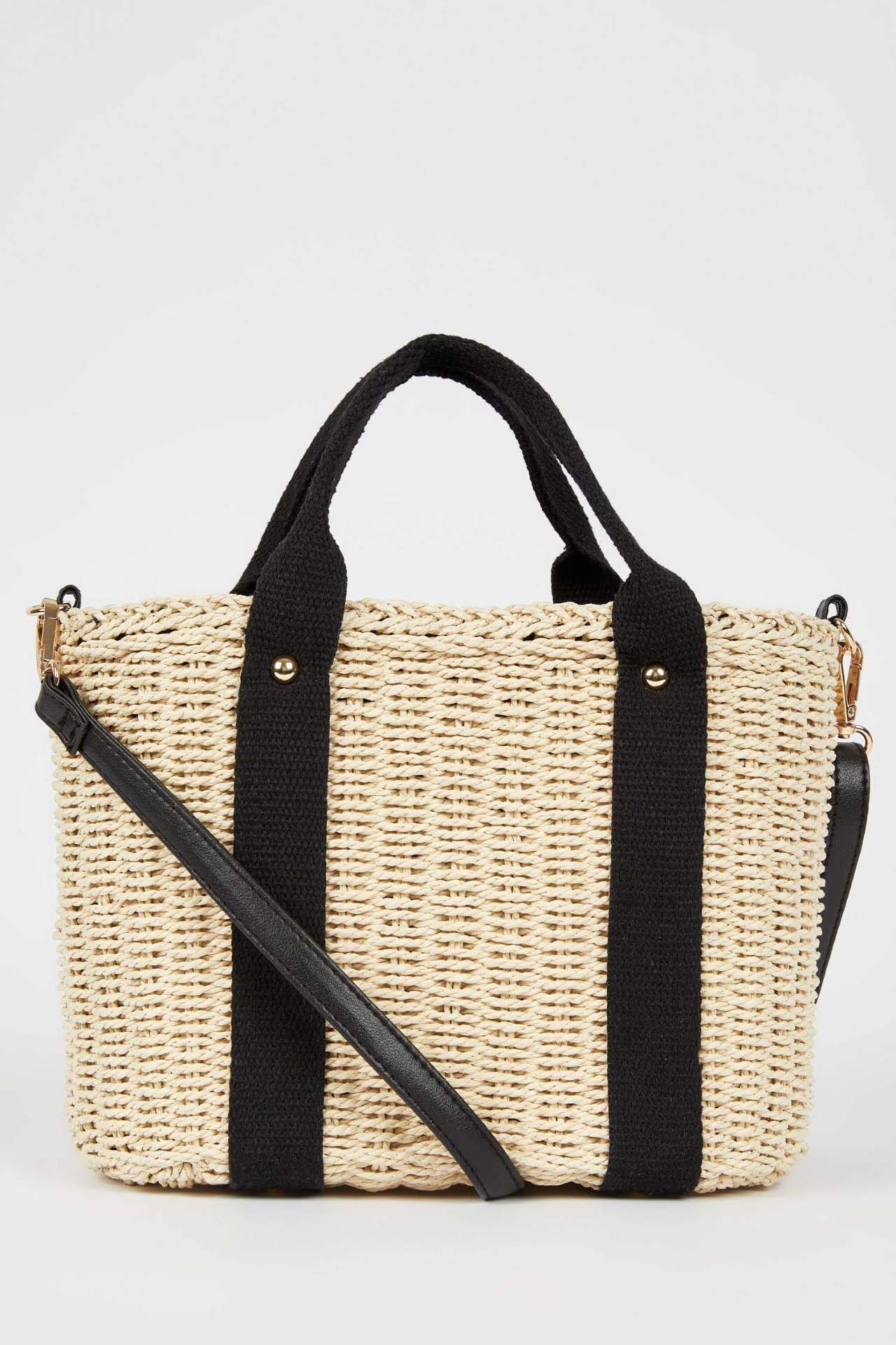 DeFactoFit Kadın Büyük Hasır Çapraz Çanta Bej