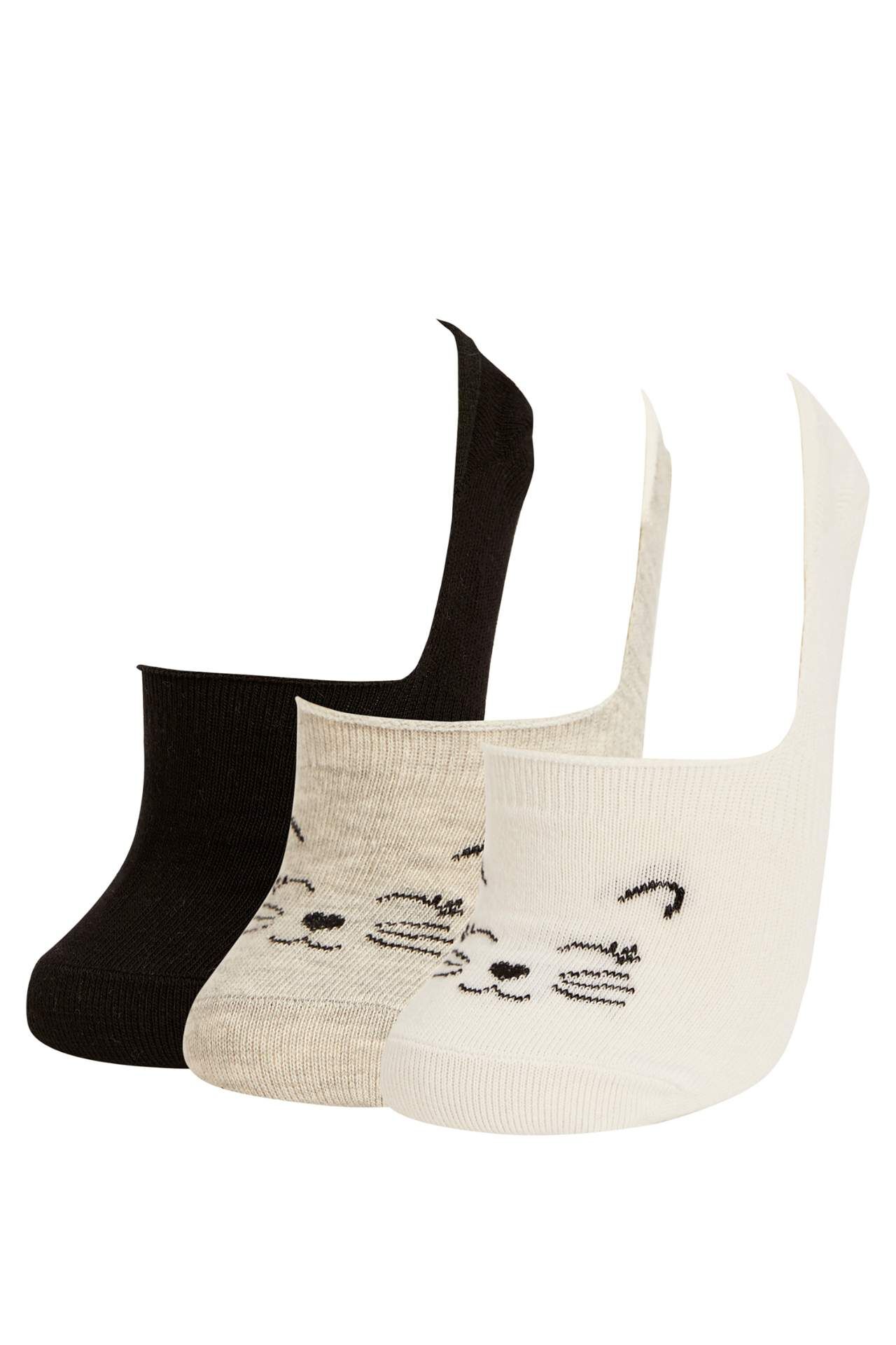 DeFactoFit Kadın Desenli 3'lü Kısa Çorap Çok Renkli