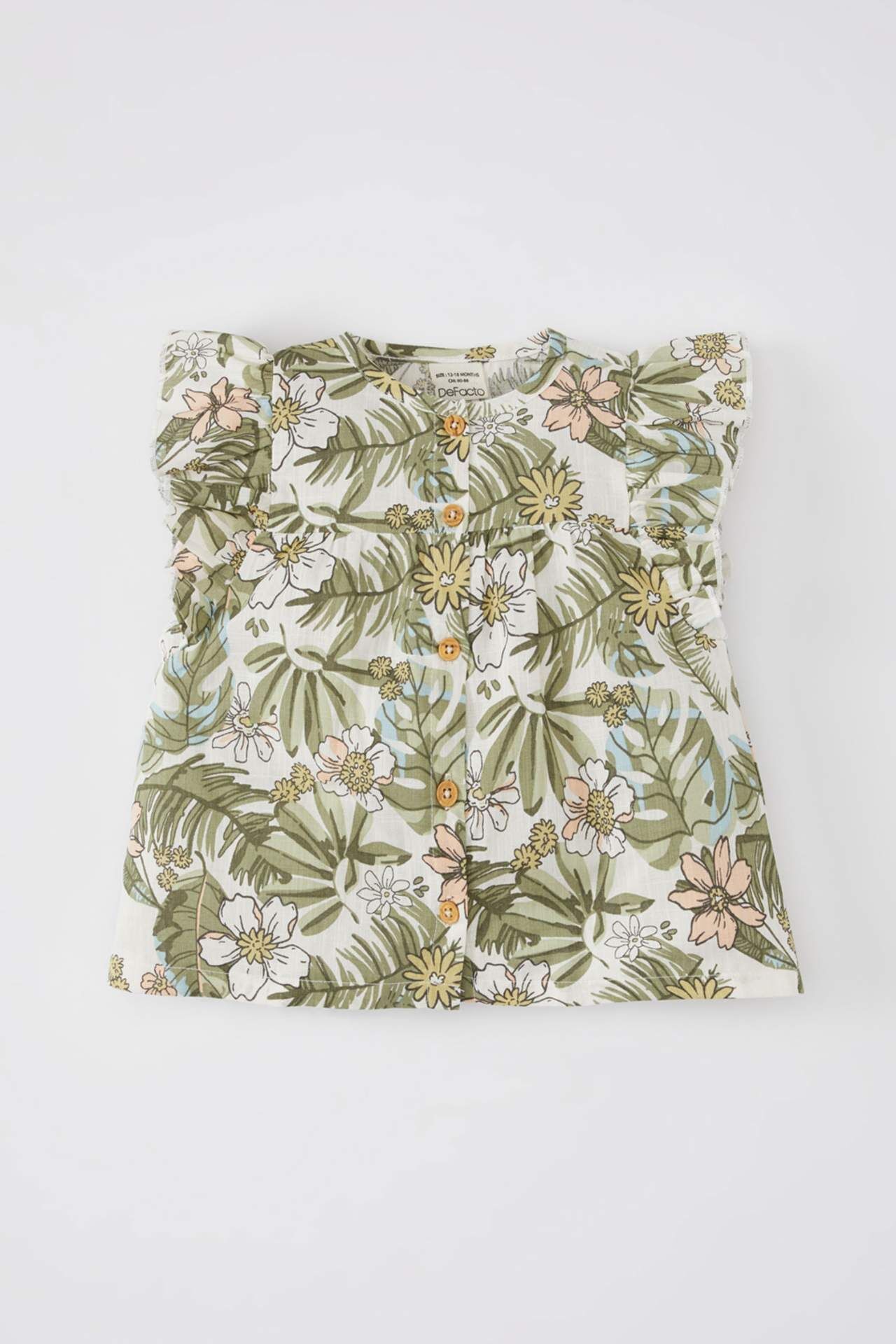DeFactoFit Kız Bebek Bisiklet Yaka Flamlı Poplin Kısa Kollu Gömlek