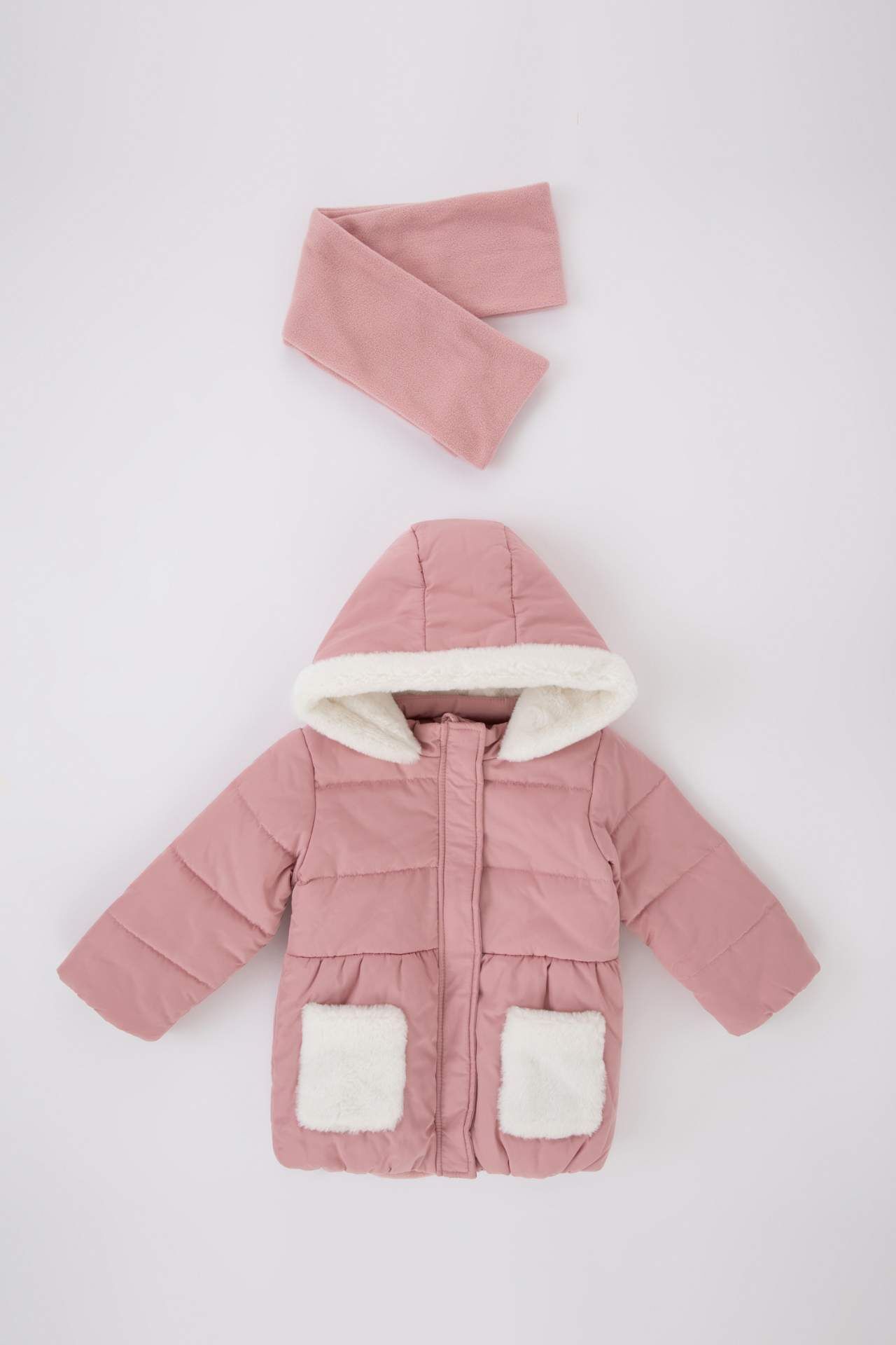 DeFactoFit Kız Bebek Su Geçirmez Polar Astarlı Kapüşonlu Mont Atkı 2'li Takım