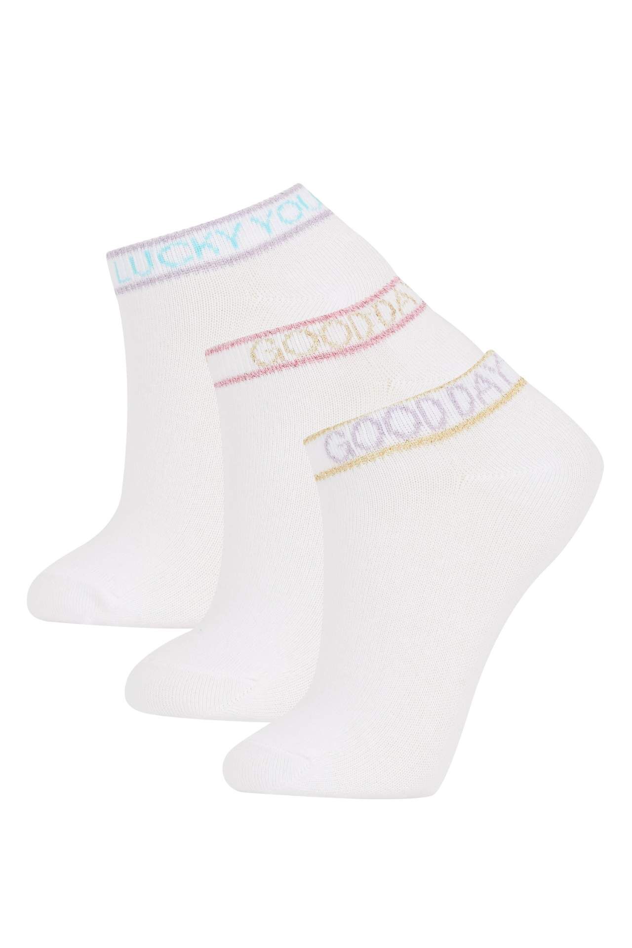 DeFactoFit Kız Çocuk 3'lü Pamuklu Patik Çorap Beyaz