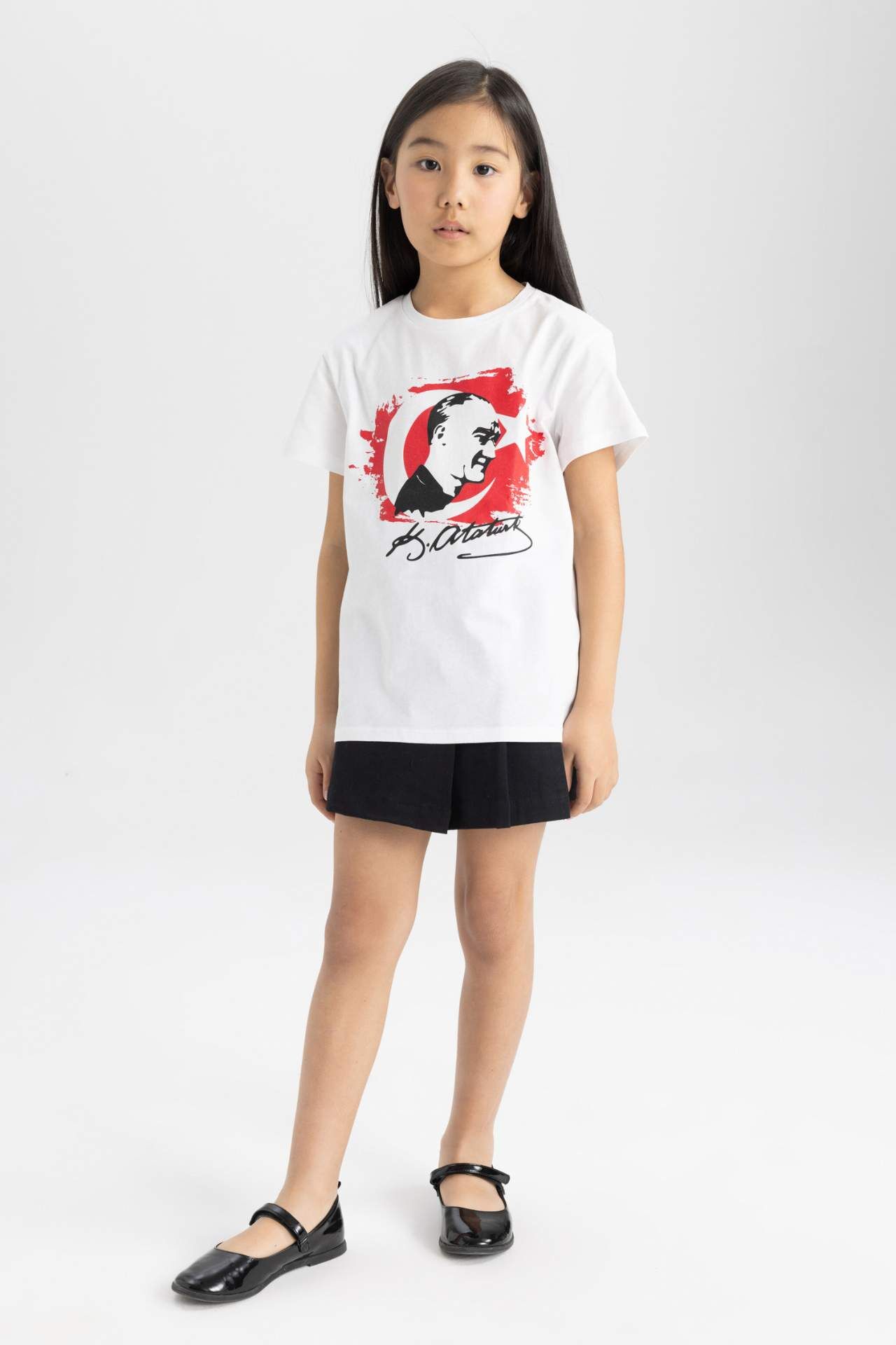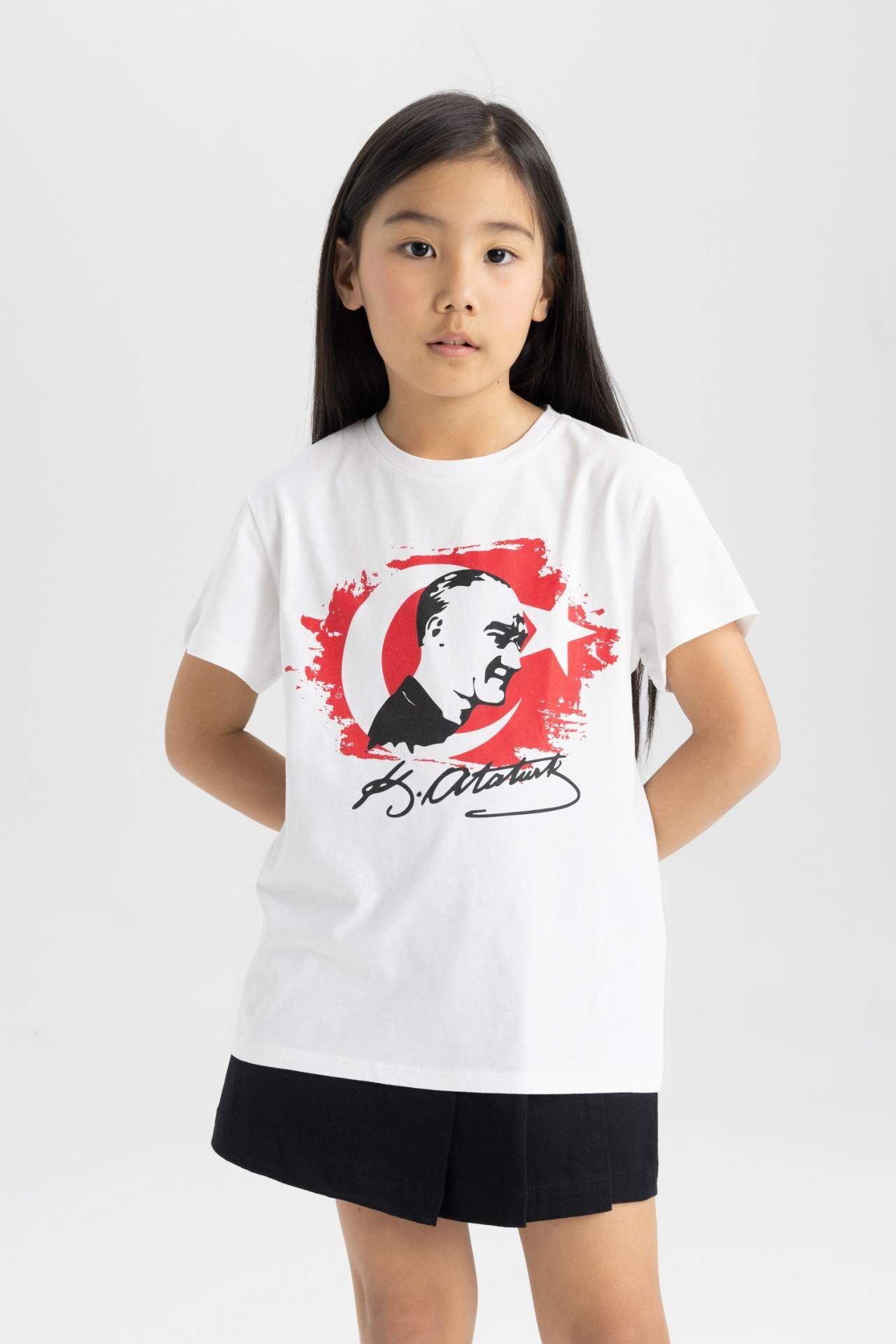 Kız Çocuk Atatürk Baskılı Kısa Kollu Tişört Beyaz