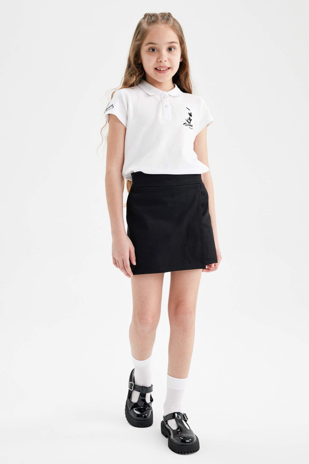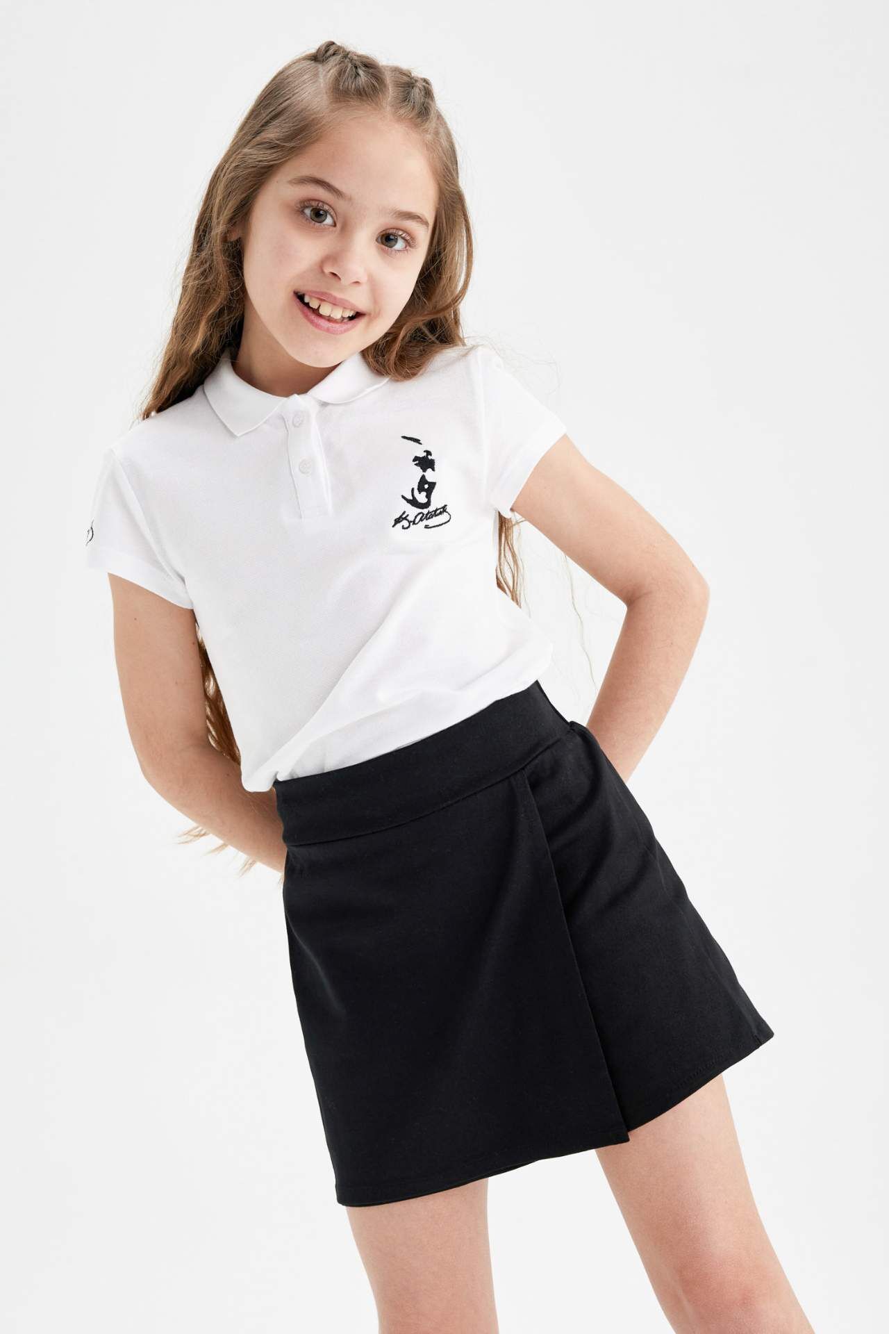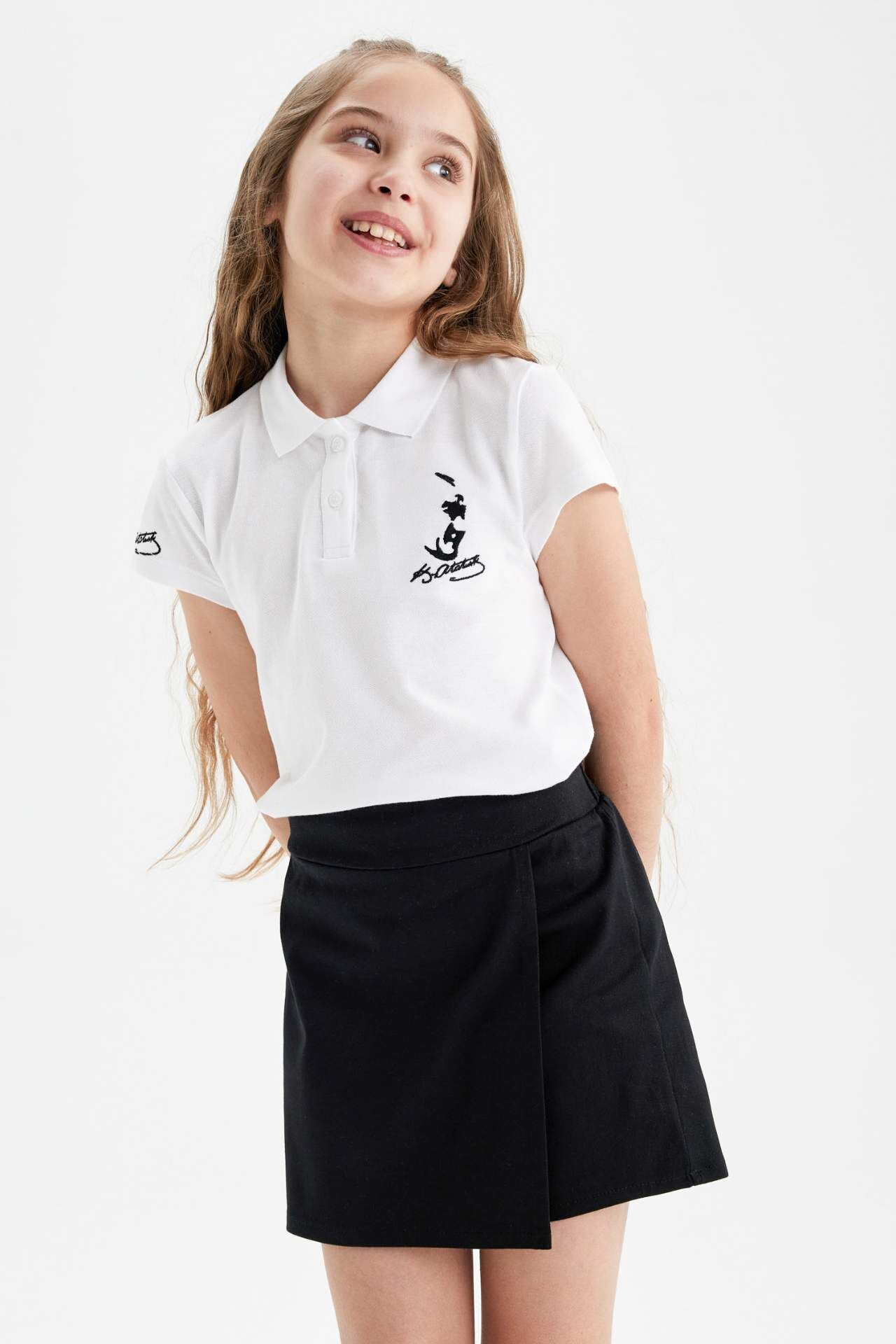 DeFactoFit Kız Çocuk Atatürk Baskılı Pike Kısa Kollu Polo Tişört Beyaz