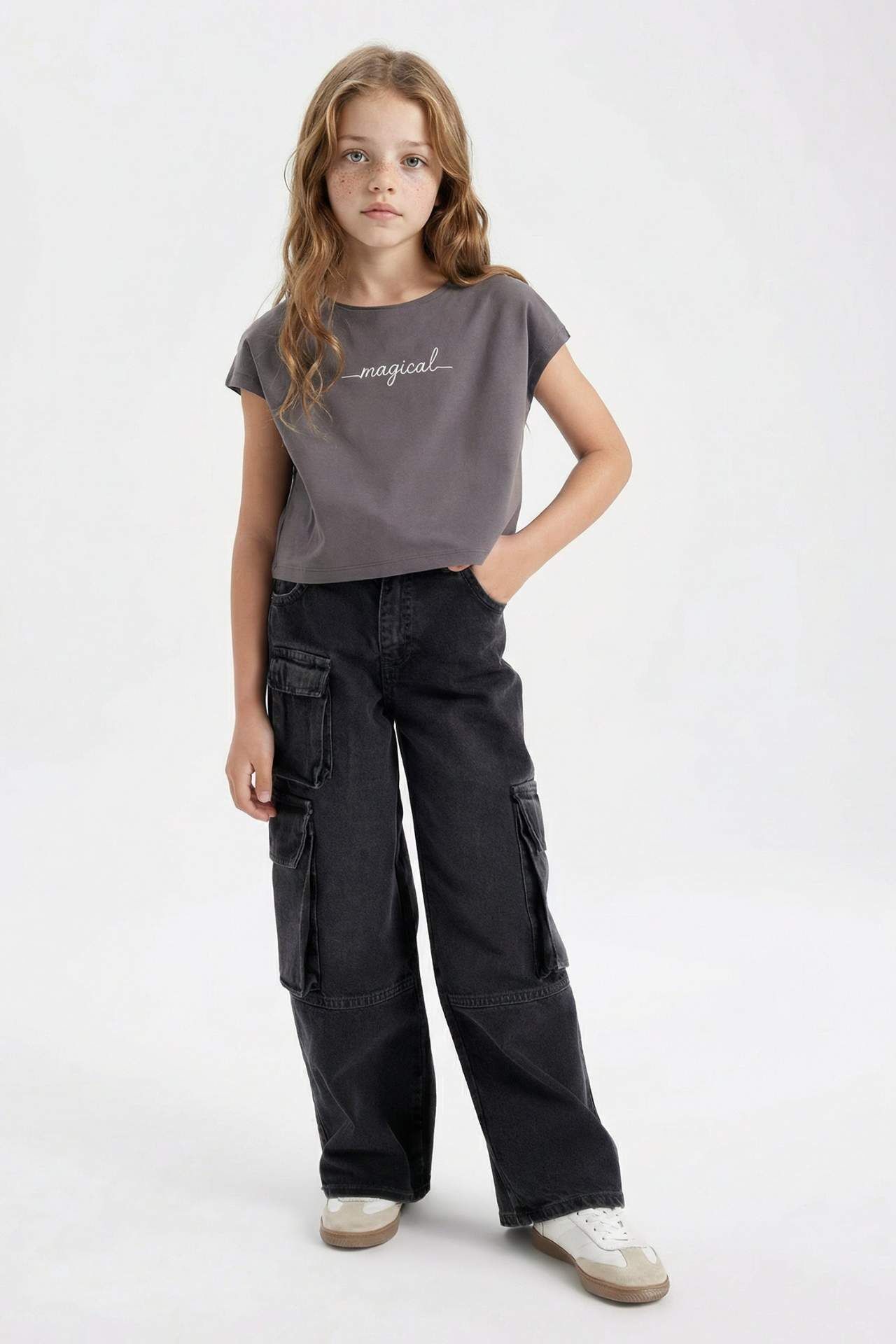 DeFactoFit Kız Çocuk Baskılı Crop Kısa Kollu Tişört D1709A824SMAR15