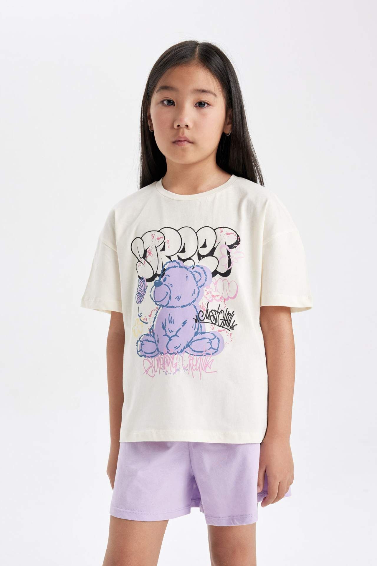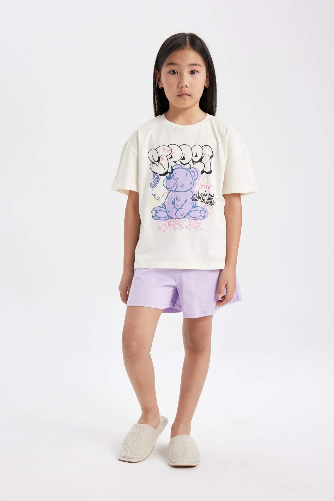 DeFactoFit Kız Çocuk Baskılı Kısa Kollu Şortlu Pijama Takımı C3375A824SMER99