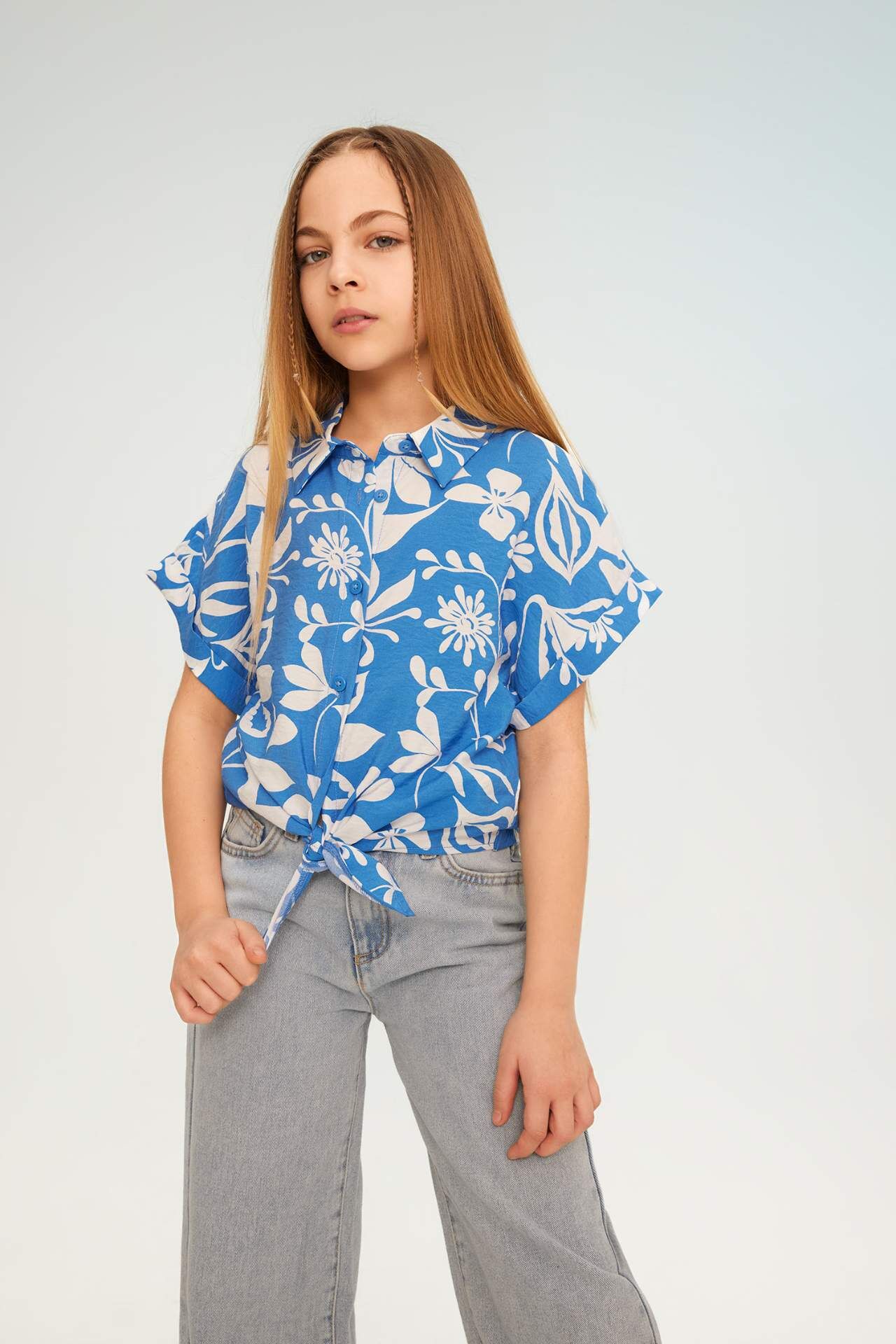 DeFactoFit Kız Çocuk Crop Kısa Kollu Desenli Gömlek B5064A824SMBE329