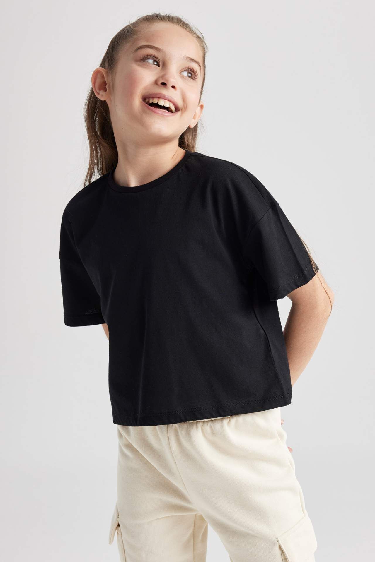 Kız Çocuk Crop Kısa Kollu Tişört Siyah
