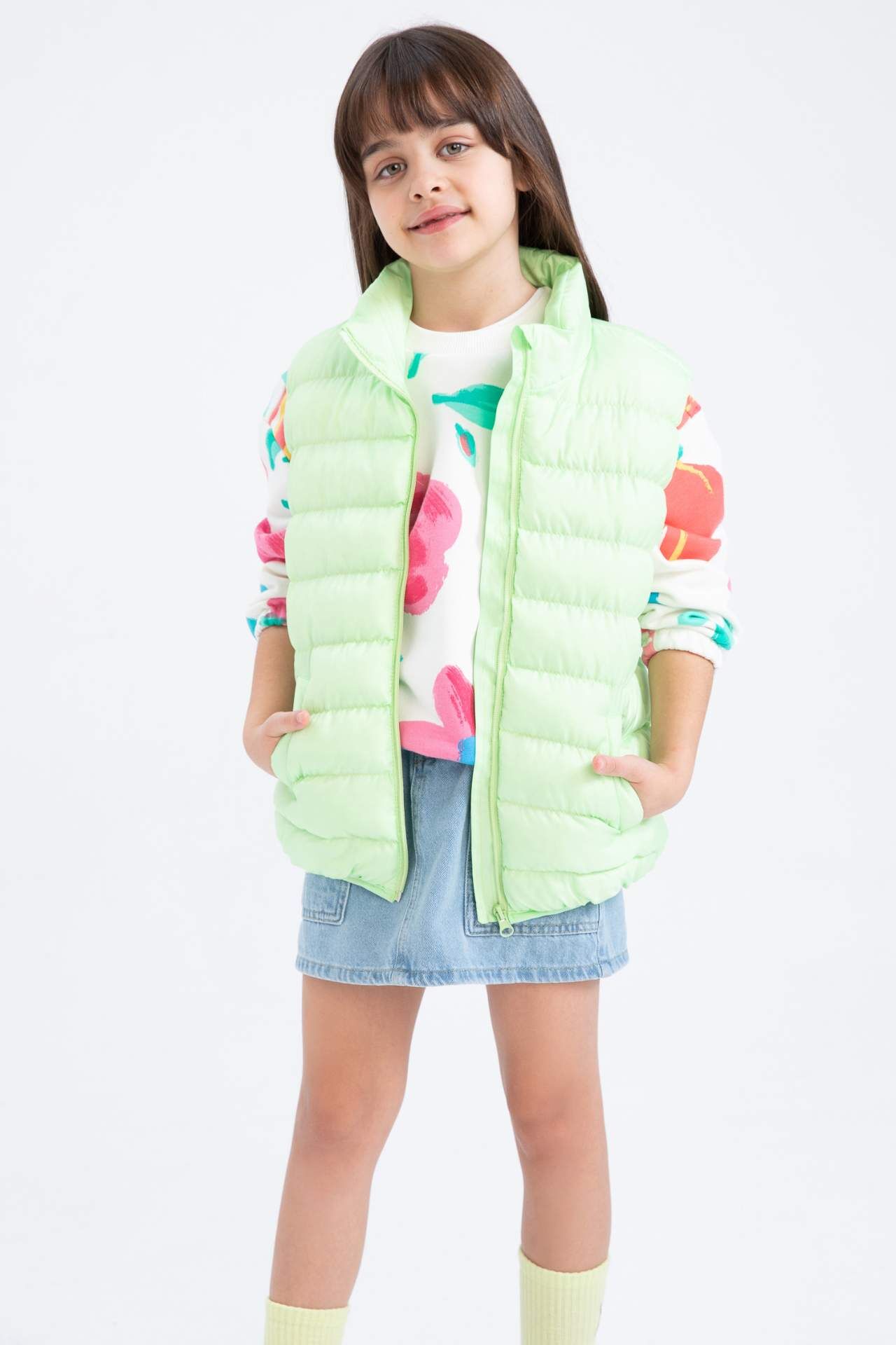Kapüşonlu, fermuar kapamalı, dik yaka basic modeli ile çocuğunuzun soğuk ve serin günlerde rüzgar geçirmez özelliği ile sıcak tutarak günlük giyimde vazgeçilmeziniz olacak DeFacto Kız Çocuk Dik Yaka Şişme Yelek.