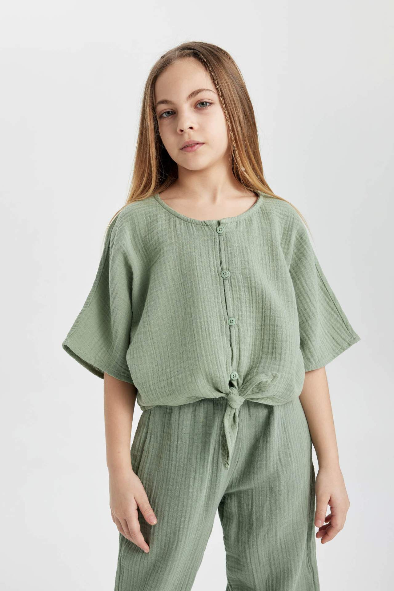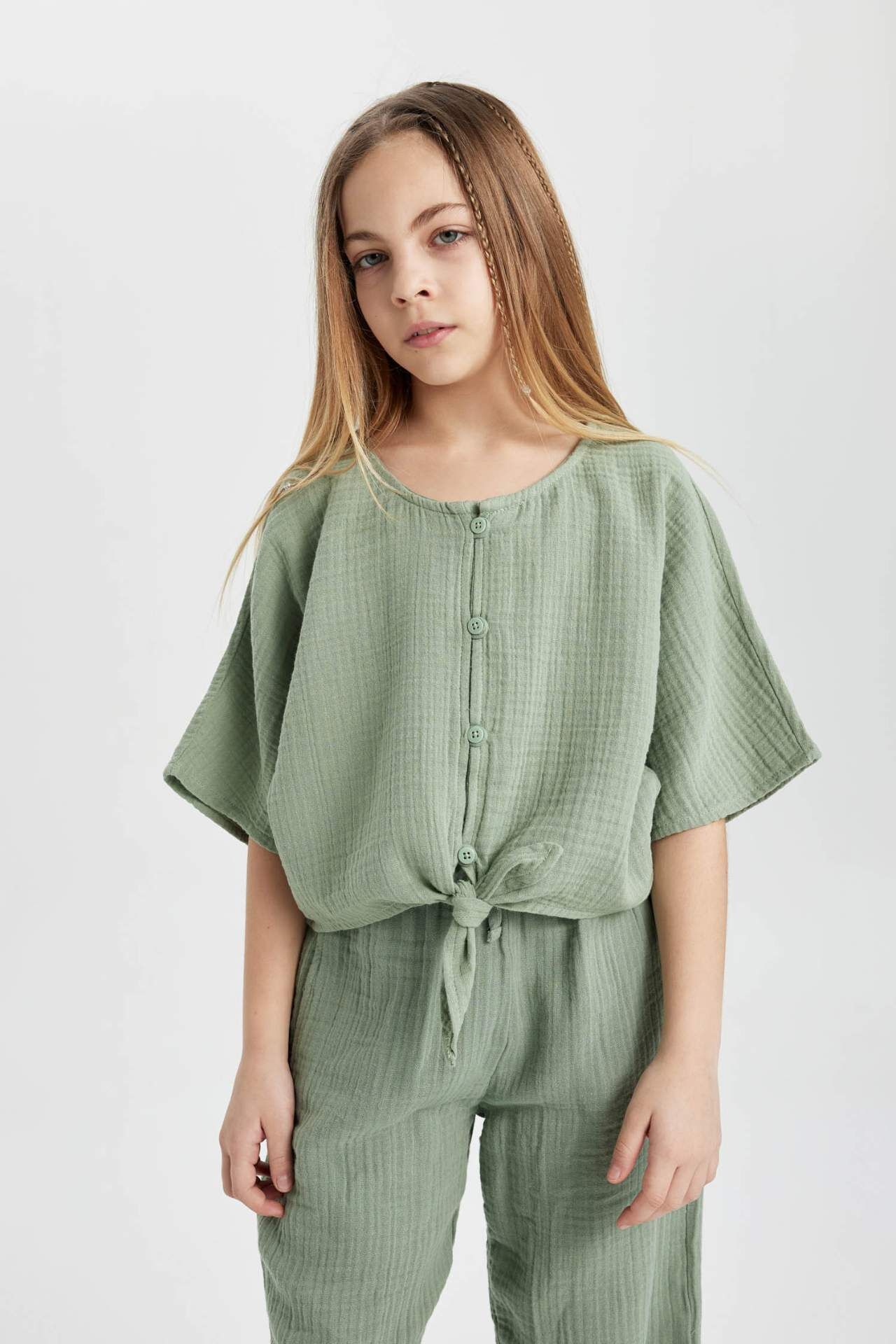 Kız çocukları için şık ve rahat bir seçenek olan kısa kollu bluz, gardırobunun vazgeçilmez parçalarından biri olacak. Yüksek kaliteli kumaşıyla hem dayanıklı hem de konforlu bir kullanım sunuyor. Farklı renk seçenekleriyle her tarza uyum sağlayan bu bluz, her mevsimde rahatlıkla kullanabileceğiniz bir parça. Şıklığı ve rahatlığı bir arada arayanlar için ideal bir seçim. Pamuk 100%,Pamuk 100% Manken Bedeni: Göğüs: 0 Boy: 1,36 Basen: 0 Bel: 0