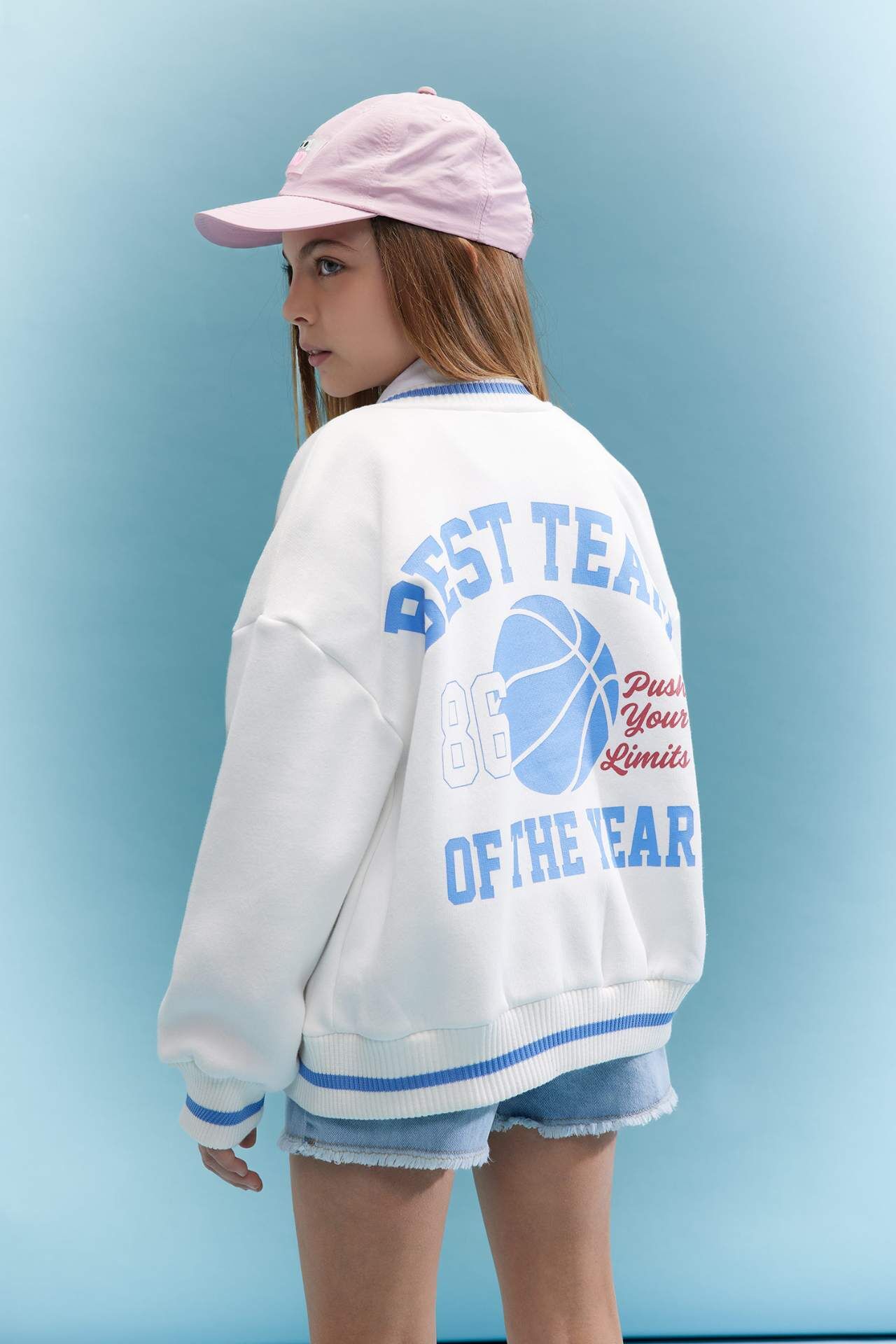 DeFactoFit Kız Çocuk Kolej Yaka Kalın İçi Yumuşak Tüylü Bomber Hırka