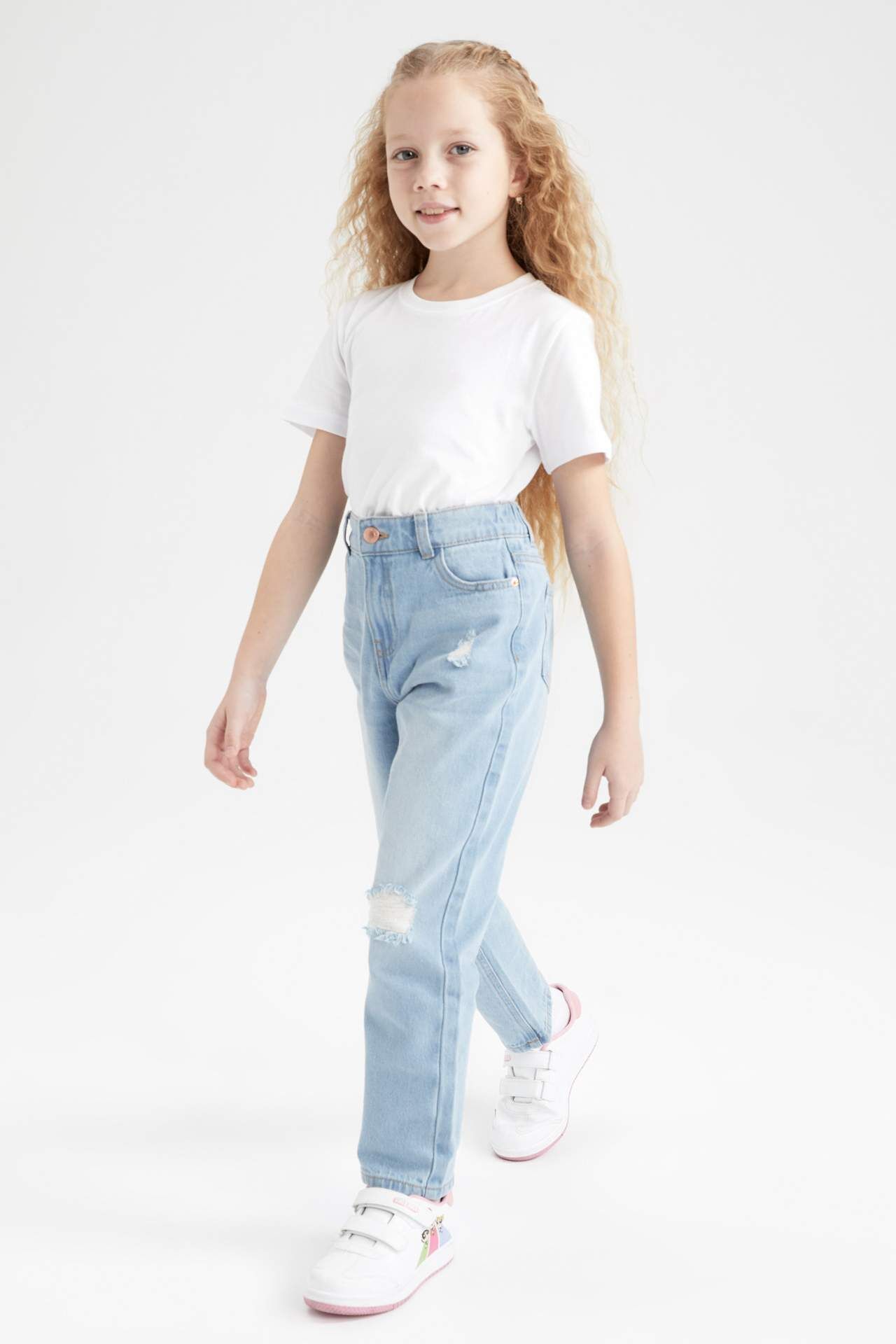 Kız Çocuk Mom Fit Yırtık Detaylı Jean Pantolon