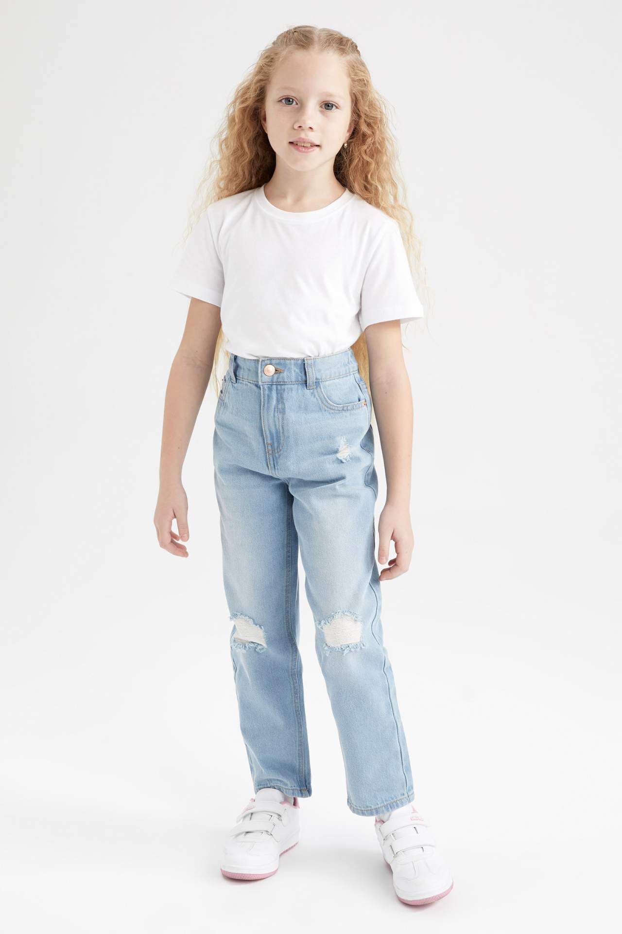Kız çocuklar için şık bir seçenek olan Mom Fit Yırtık Detaylı Jean Pantolon, tarzınızı ön plana çıkaracak. Rahat kesimi ve yırtık detaylarıyla dikkat çeken bu pantolon, her kombininize modern bir hava katacak. Kaliteli kumaşıyla uzun ömürlü kullanım sunan bu pantolon, gardırobunuzun vazgeçilmezi olacak. Şıklığı ve konforu bir arada arayanlar için ideal bir tercih. Pamuk 100%,Pamuk 100%