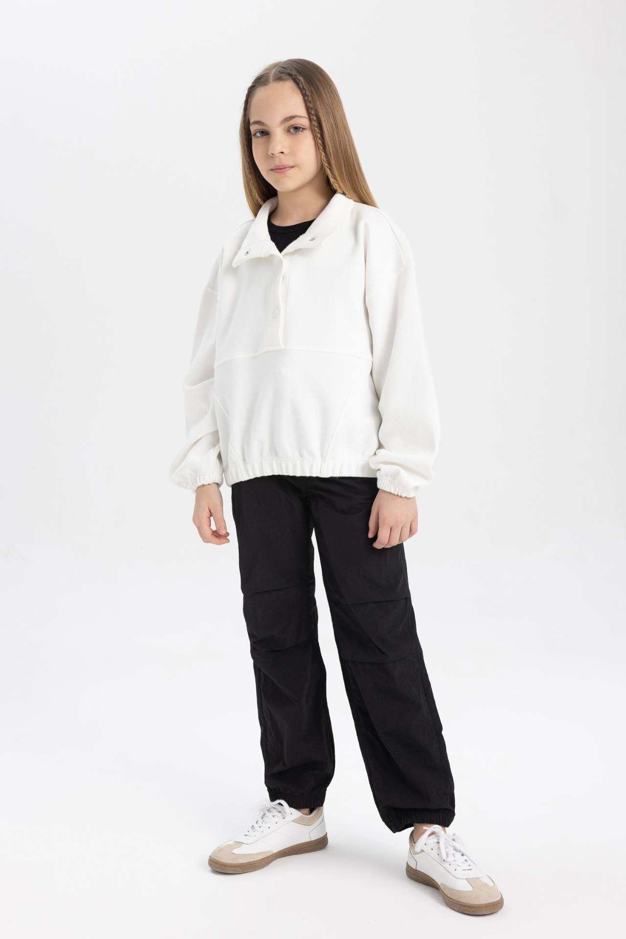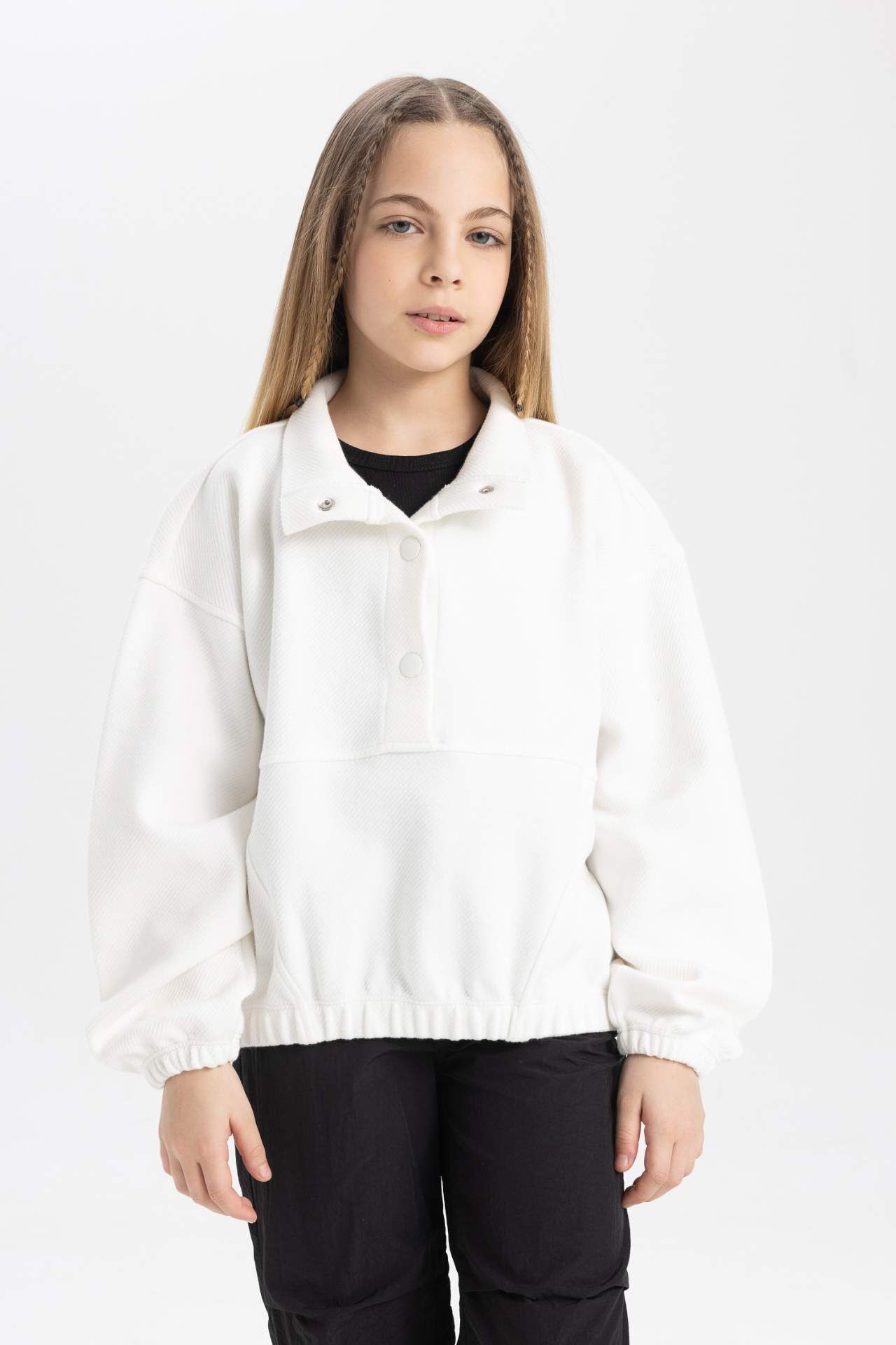 DeFactoFit Kız Çocuk Oversize Fit Balıkçı Yaka Sweatshirt
