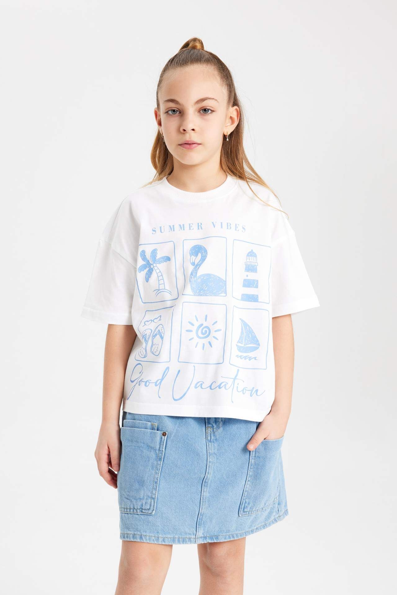 DeFactoFit Kız Çocuk Oversize Fit Baskılı Kısa Kollu Tişört B5128A824SMWT34