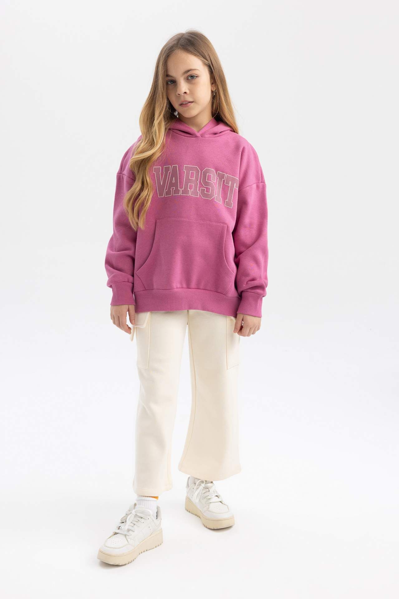 Kız Çocuk Oversize Fit Kapüşonlu İçi Yumuşak Tüylü Kalın Sweatshirt