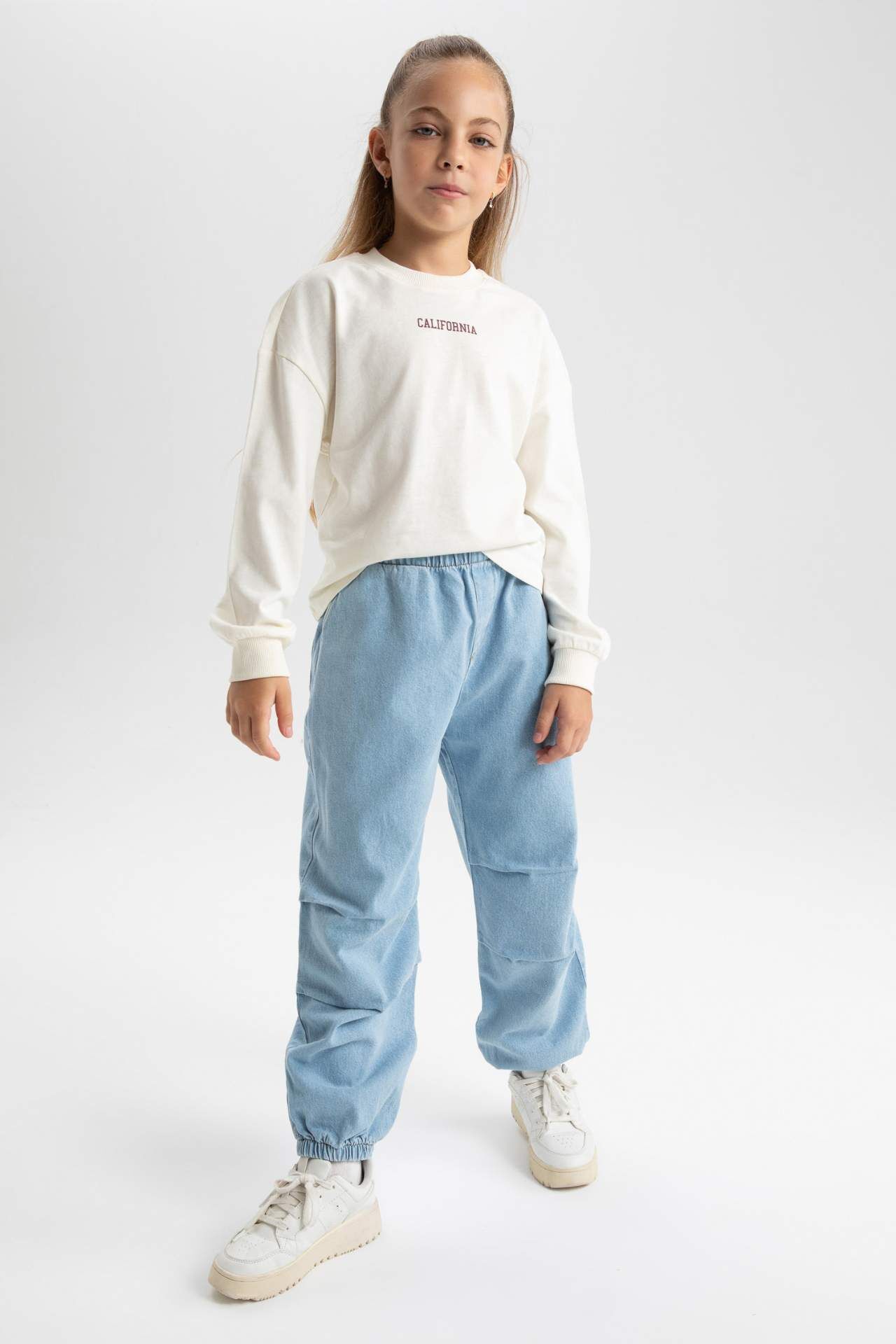 DeFactoFit Kız Çocuk Paraşüt Jogger Paça Jean Pantolon