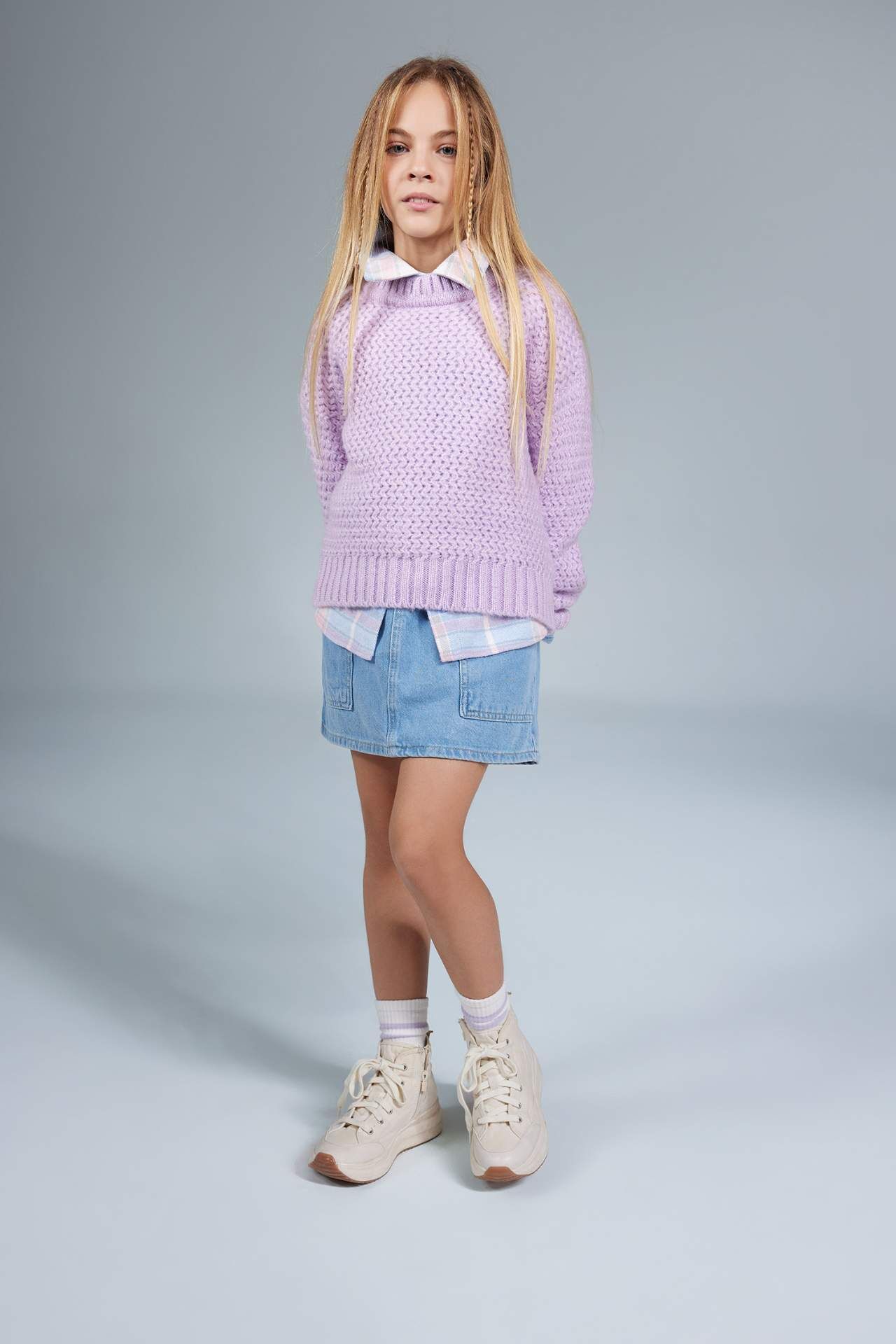 Kız Çocuk Regular Fit Bisiklet Yaka Kazak, hem şık hem de rahat bir giyim seçeneğidir. Regular fit kesimi ve bisiklet yaka detayı, modern ve zarif bir görünüm sunarken çocuğunuzun rahatlığını da düşünür. Akrilik 75%,Poliester 25%,Akrilik 75%,Poliester 25%