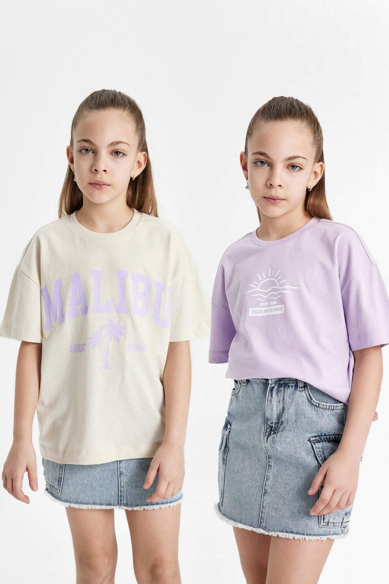 DeFactoFit Kız Çocuk Relax Fit 2'li Kısa Kollu Tişört B6703A824SMPR67
