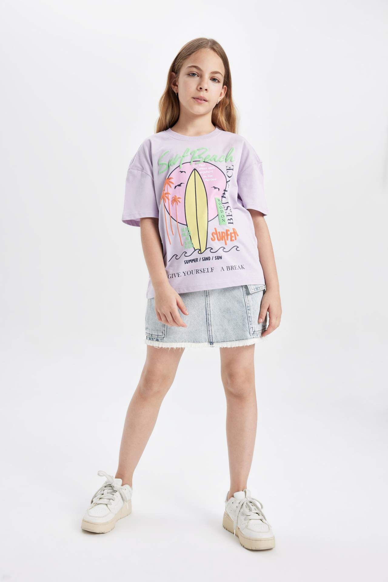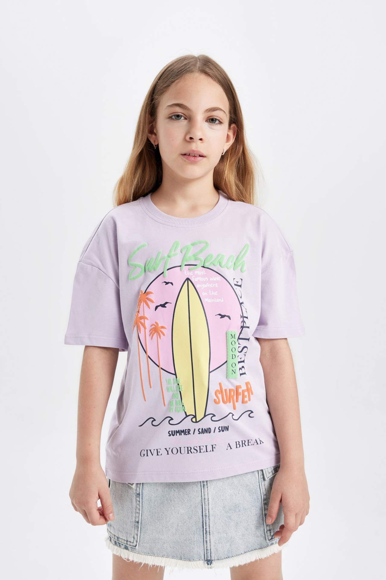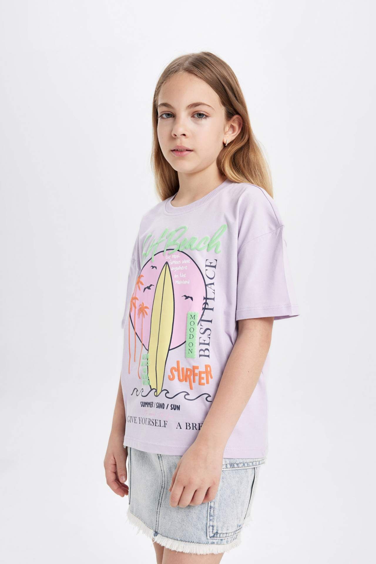 DeFactoFit Kız Çocuk Relax Fit Baskılı Kısa Kollu Tişört