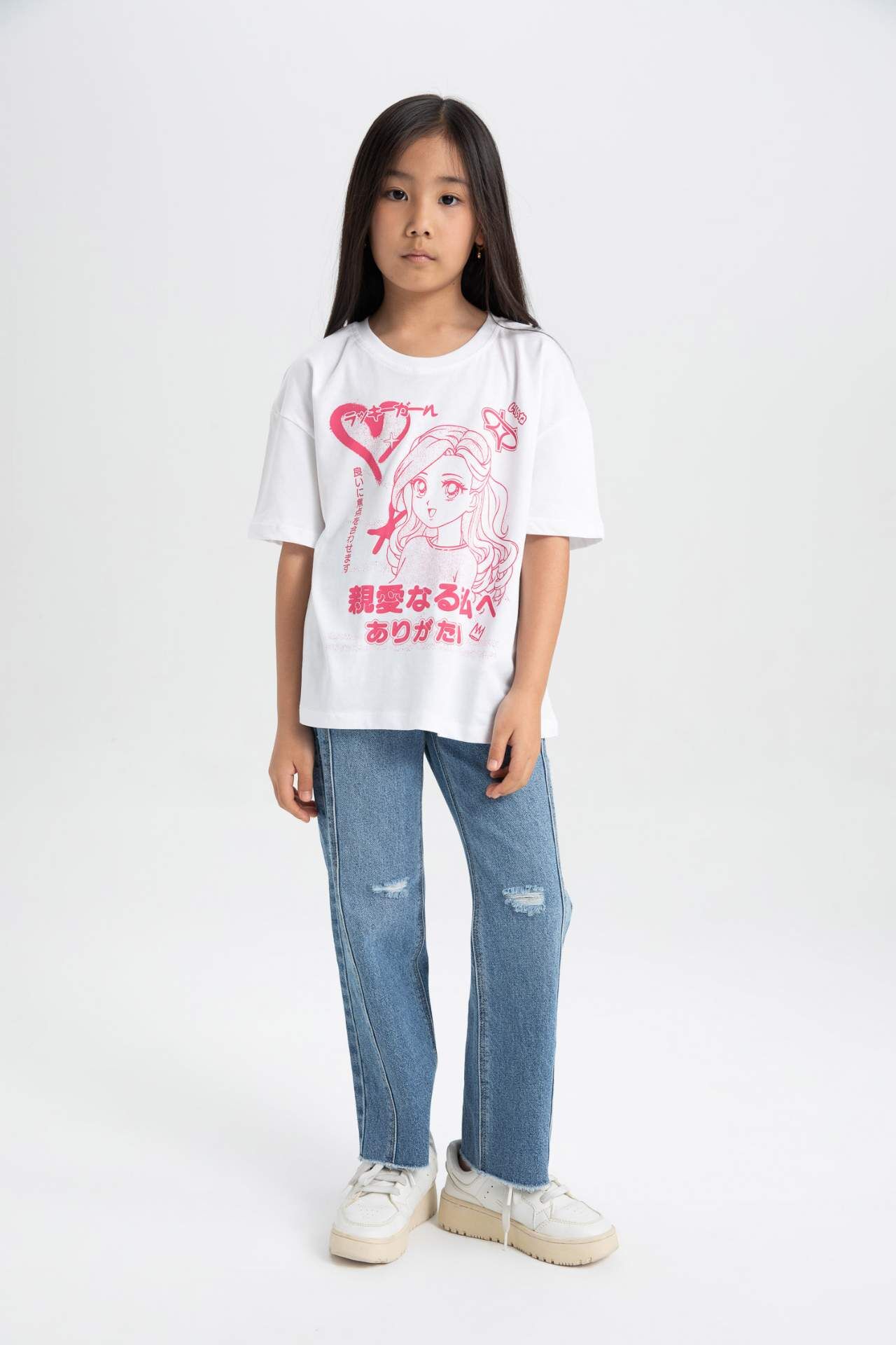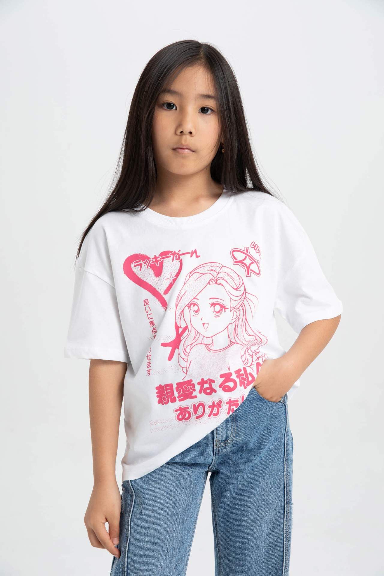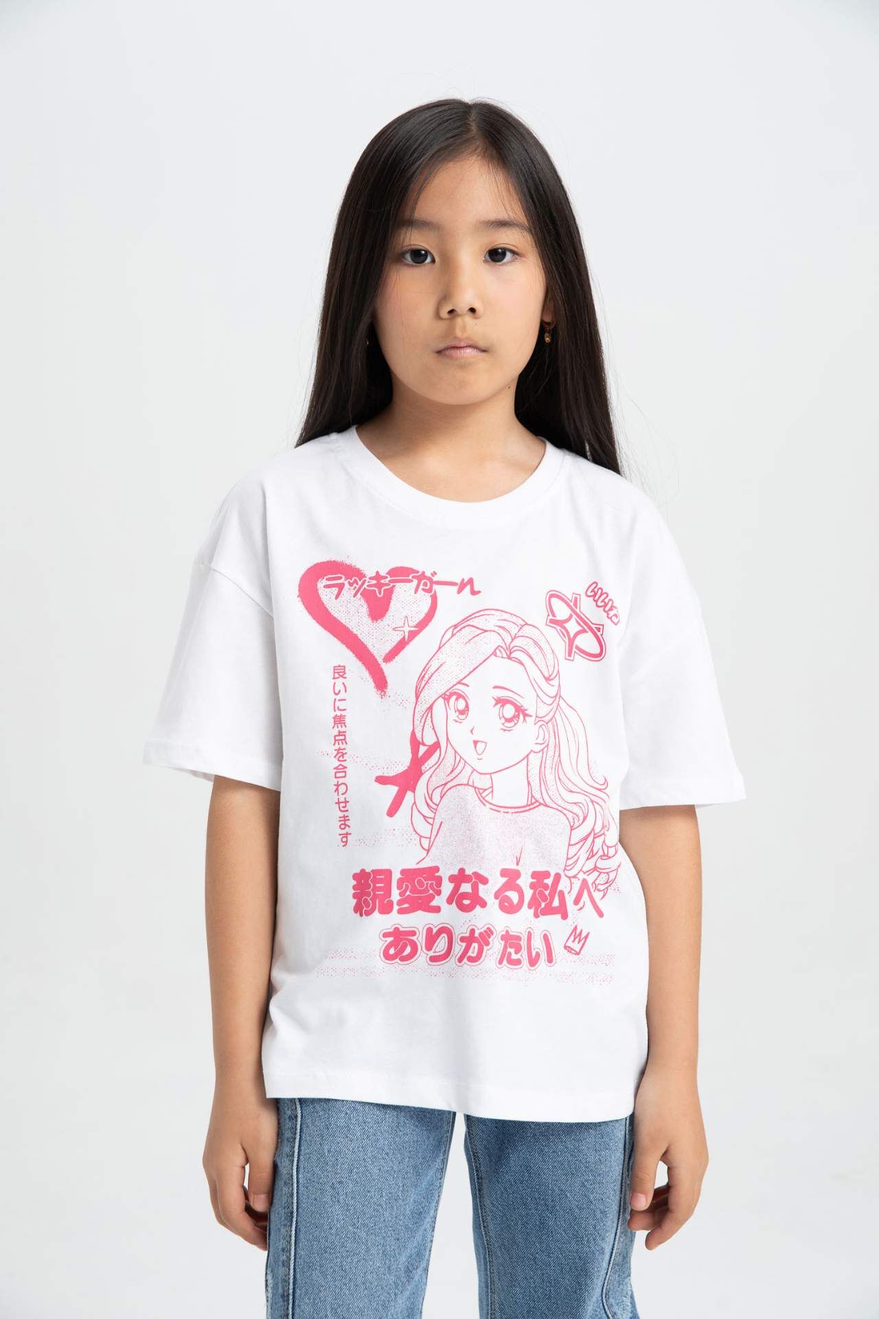 Kız Çocuklar için Rahat Kesim Baskılı Kısa Kollu Tişört, tarzınıza renk katacak! Yüksek kaliteli kumaşı ve şık tasarımıyla her zaman öne çıkmanızı sağlar. Günlük kullanıma uygun olan bu tişört, gardırobunuzun vazgeçilmezi olmaya aday! Pamuk 100%,Pamuk 100%