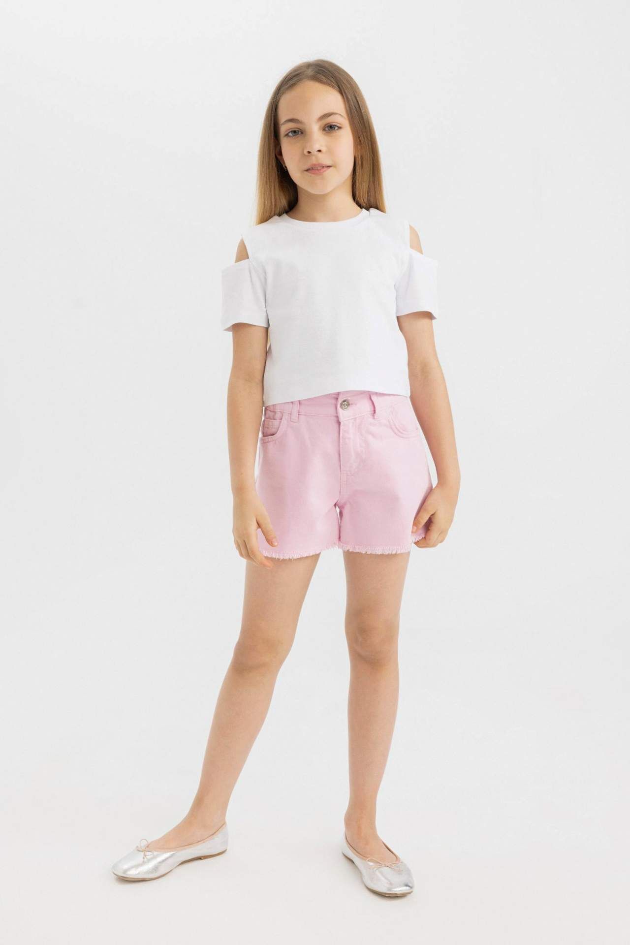 DeFactoFit Kız Çocuk Slim Fit Bisiklet Yaka Basic Ribana Kısa Kollu Tişört C9714A824HSWT34