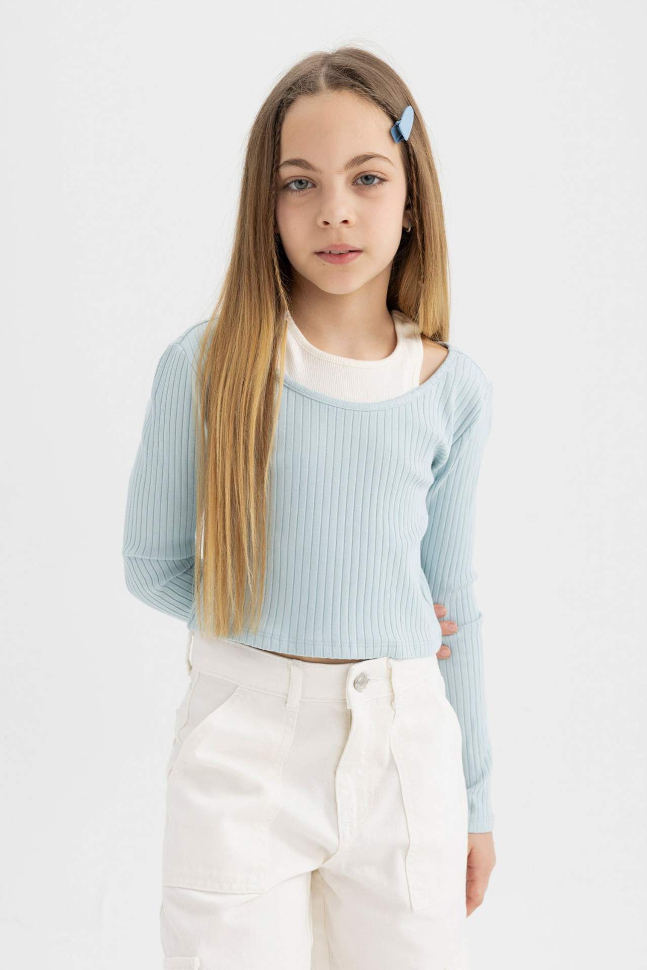 DeFactoFit Kız Çocuk Slim Fit Bisiklet Yaka Fitilli Kaşkorse Uzun Kollu Tişört B7388A824SPBE506