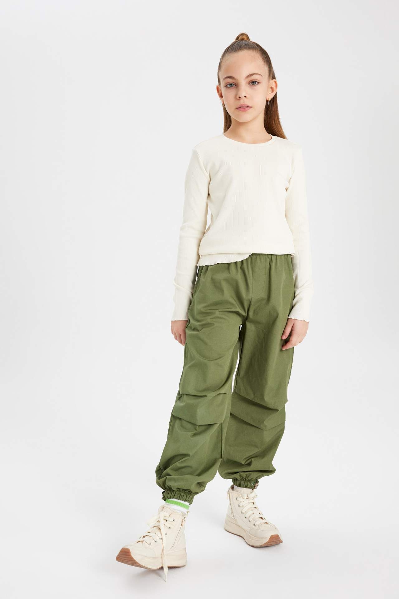 DeFacto Kız Çocuk Slim Fit Bisiklet Yaka Ribana Uzun Kollu Tişört