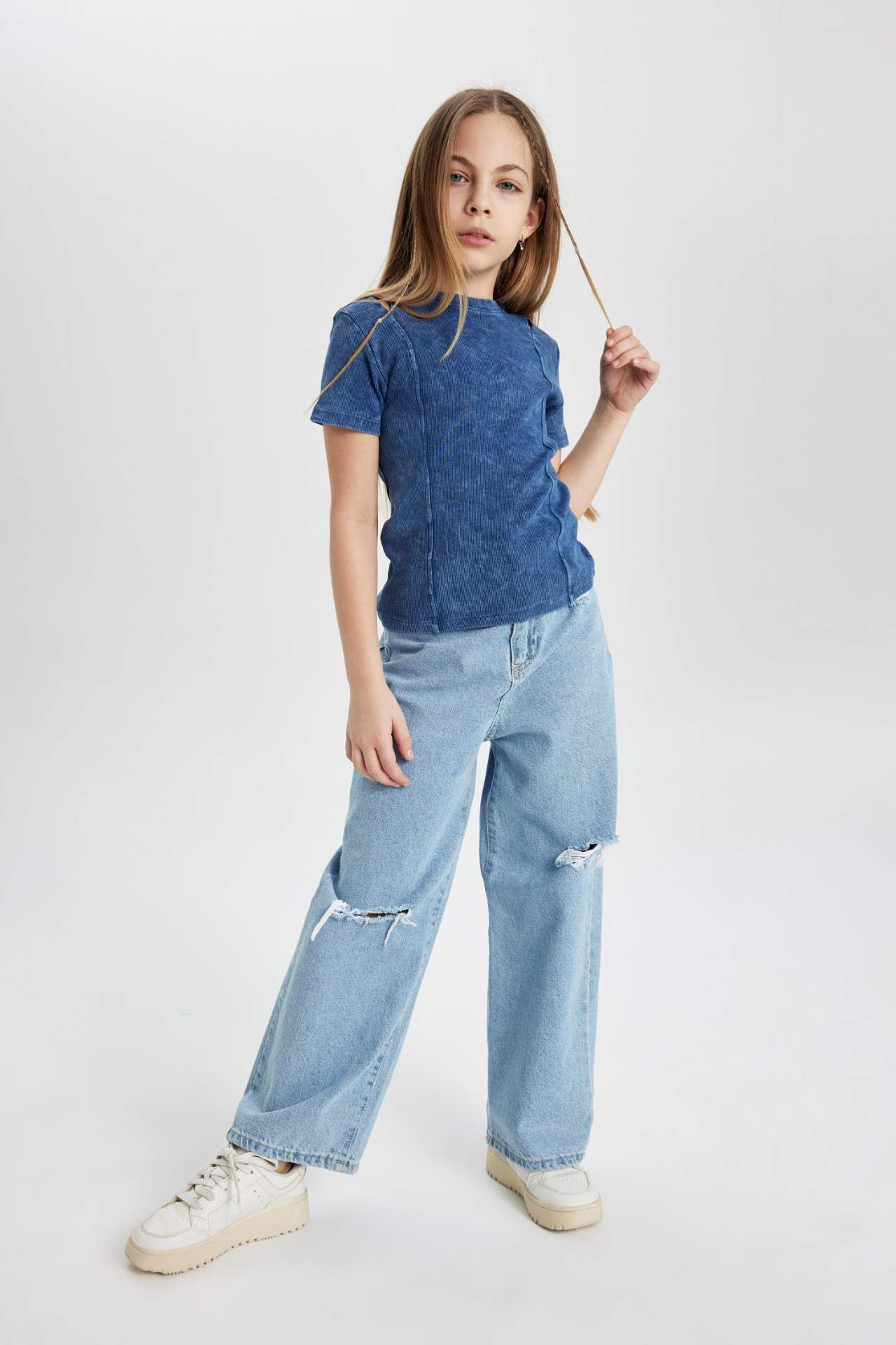 Kız Çocuk Slim Fit Fitilli Kaşkorse Kısa Kollu Tişört: Şık ve rahat kumaşıyla öne çıkan bu tişört, kız çocuklar için mükemmel bir seçimdir. Slim fit kesimi ve şık kaşkorse detayıyla kızınızın tarzını yansıtın. Hem günlük kullanıma hem de özel günlerde tercih edebileceğiniz şık bir parça. Çocuğunuzun gardırobunun vazgeçilmezi olmaya aday. Pamuk 97%,Elastan 3%,Pamuk 97%,Elastan 3% Manken Bedeni: Göğüs: 0 Boy: 1,36 Basen: 0 Bel: 0