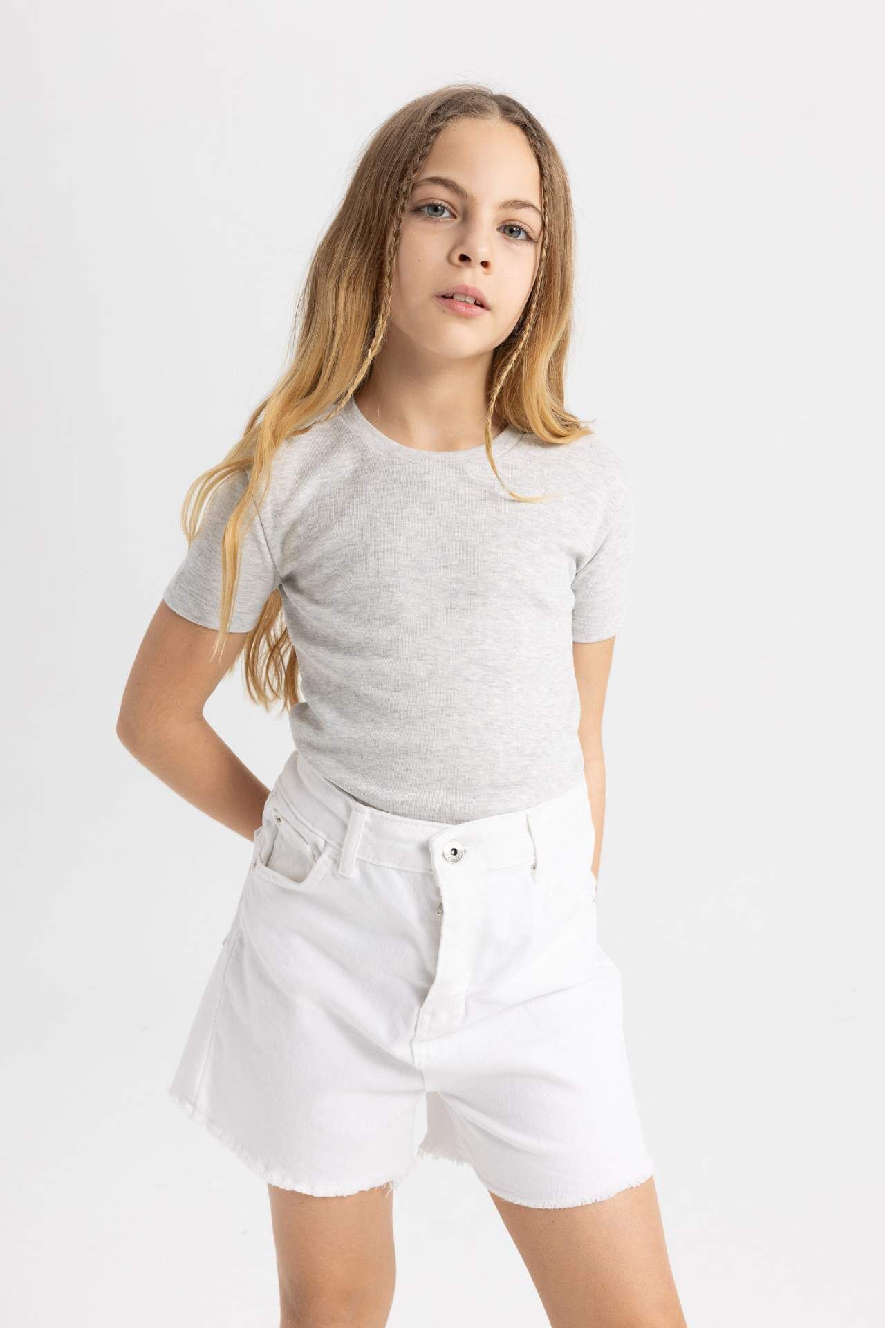 DeFactoFit Kız Çocuk Slim Fit Ribana Kısa Kollu Tişört B3054A824SMGR379