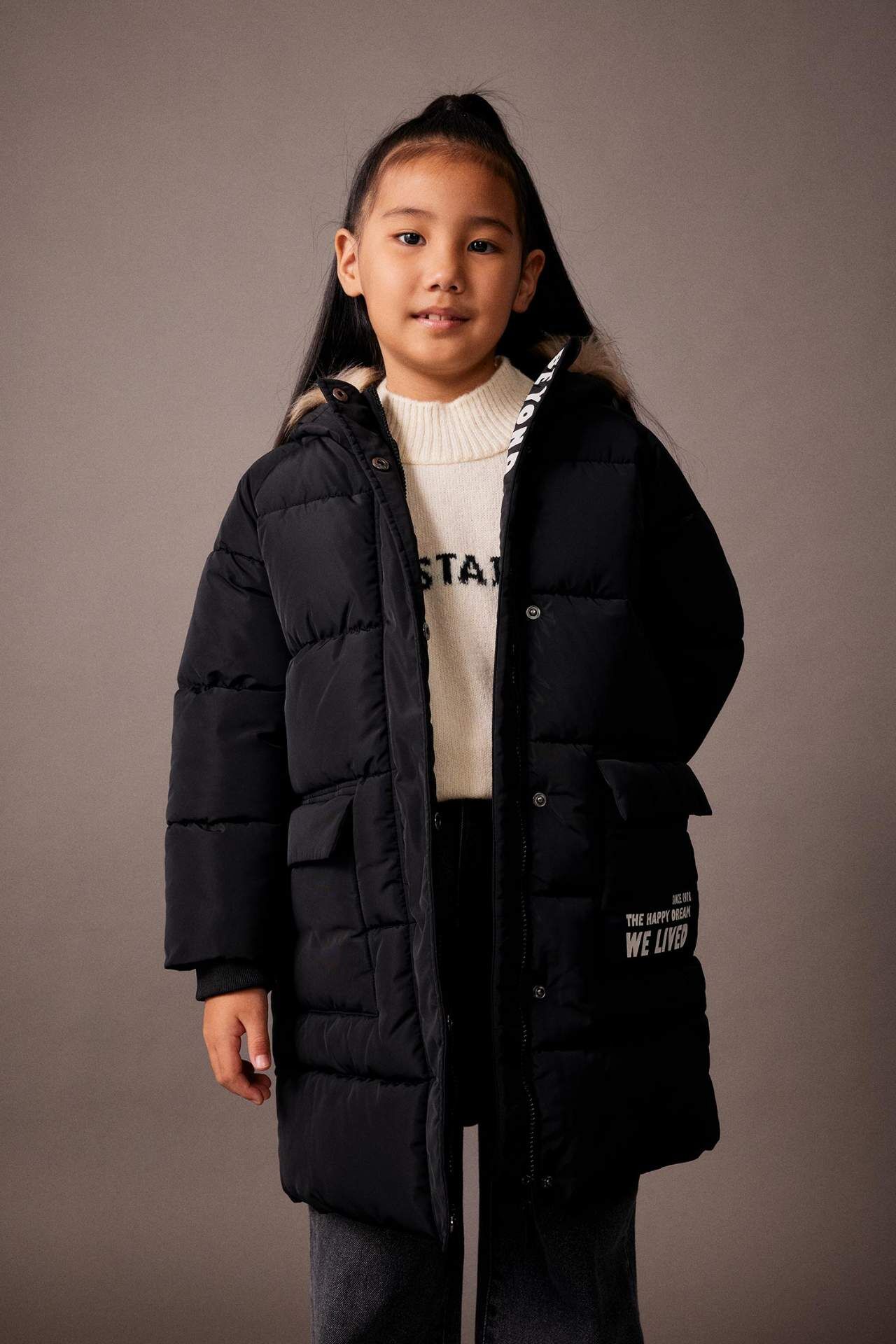 Kız Çocuk Su İtici Kapüşonlu Uzun Parka