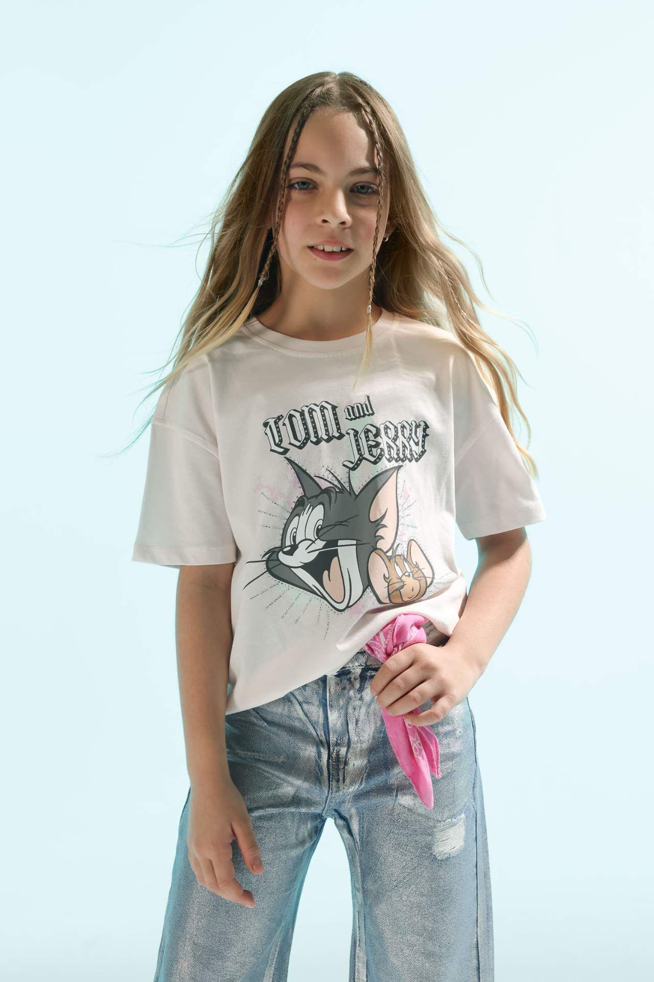 DeFactoFit Kız Çocuk Tom & Jerry Oversize Fit Kısa Kollu Tişört