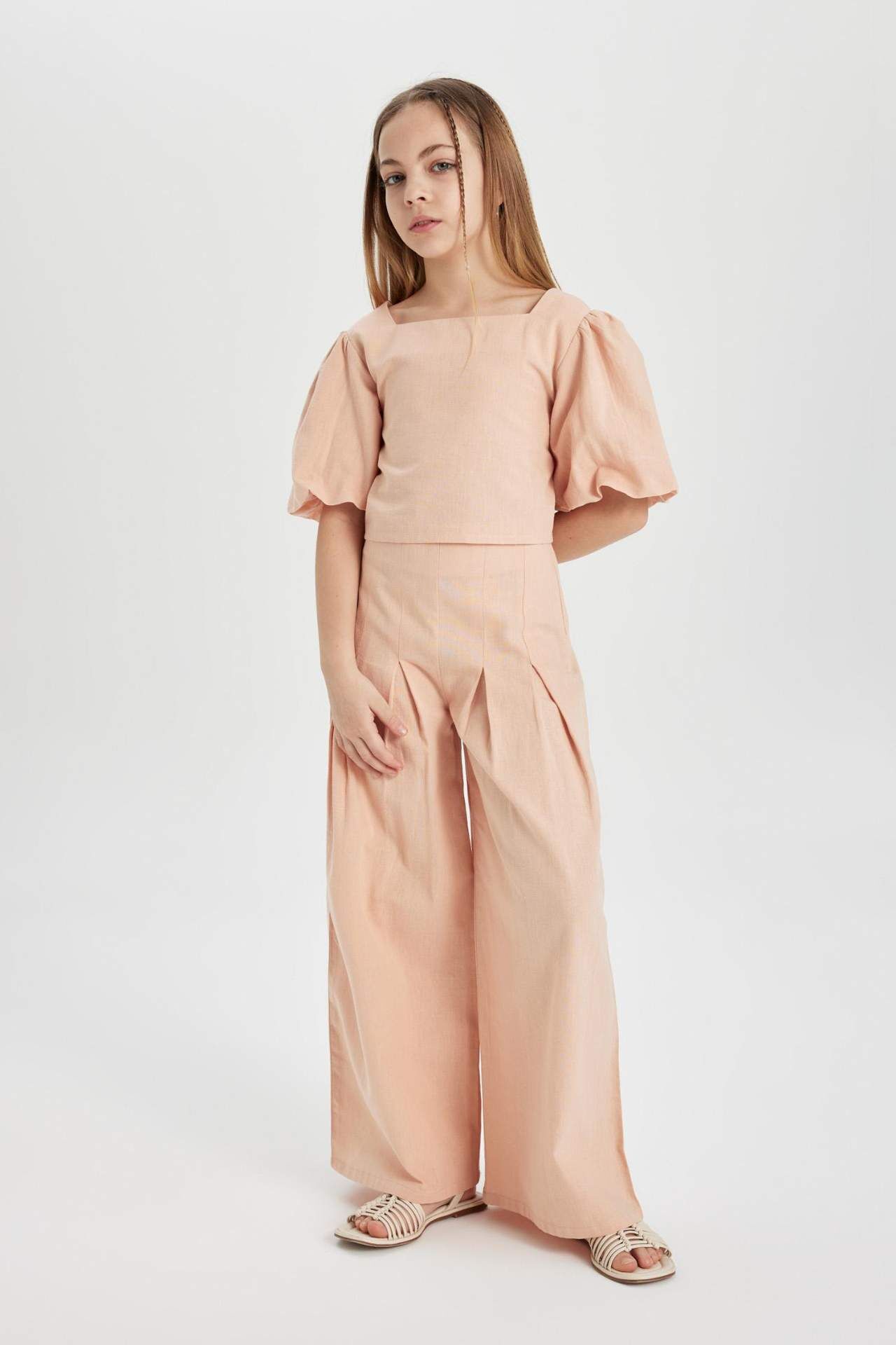Kız çocuklarının gardırobuna şıklık ve rahatlık katmak için tasarlanan geniş paça pamuklu pantolon, her tarza uyum sağlıyor. Yüksek kaliteli pamuklu kumaşıyla gün boyu konfor sunarken, geniş paça kesimiyle de hareket özgürlüğü sağlıyor. Şık ve modern görünümüyle dikkat çeken bu pantolon, her mevsimde rahatlıkla kullanabileceğiniz bir seçenek. Gardırobunuzun vazgeçilmezi olacak! Pamuk 90%,Keten 10%,Pamuk 90%,Keten 10%,Pamuk 90%,Keten 10%